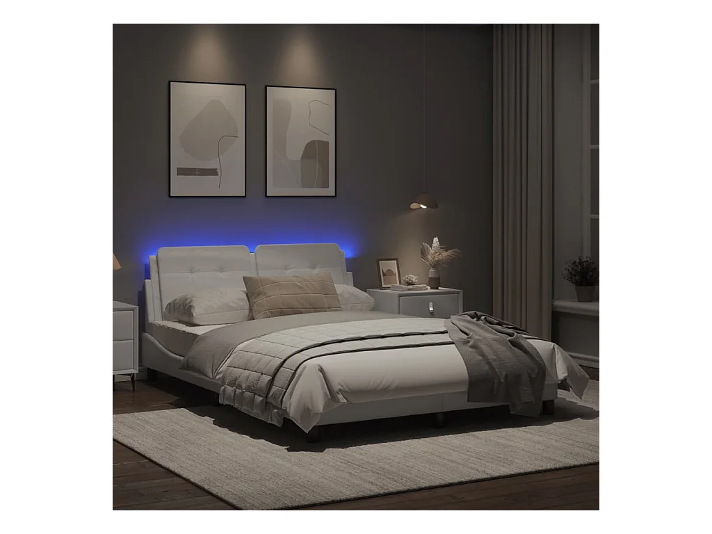 Cadre de lit avec lumières LED blanc 140x200 similicuir