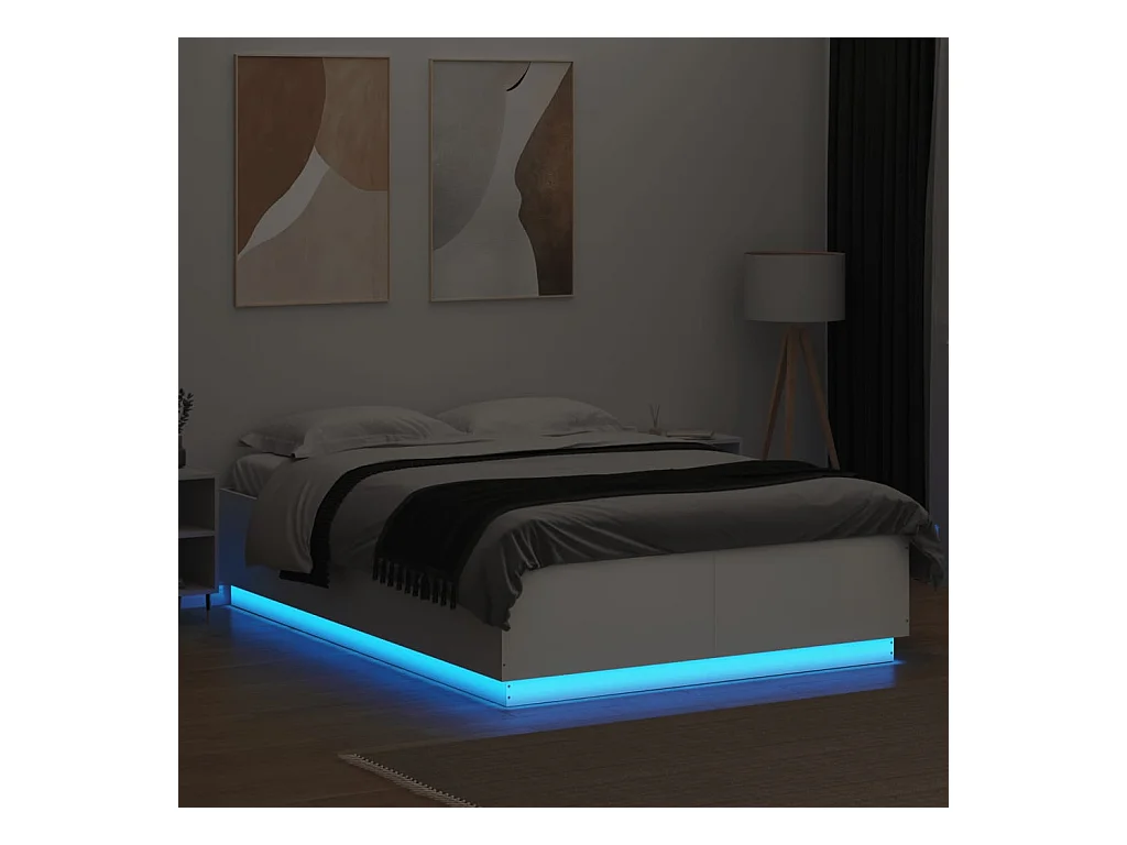 Cadre de lit avec lumières LED blanc 150x200