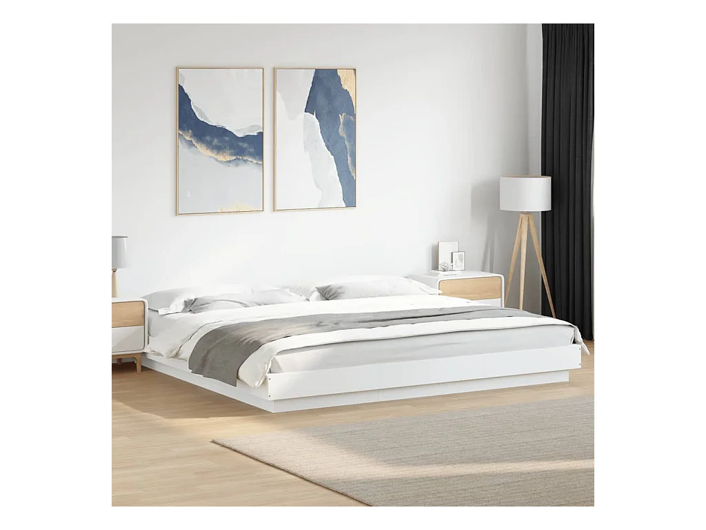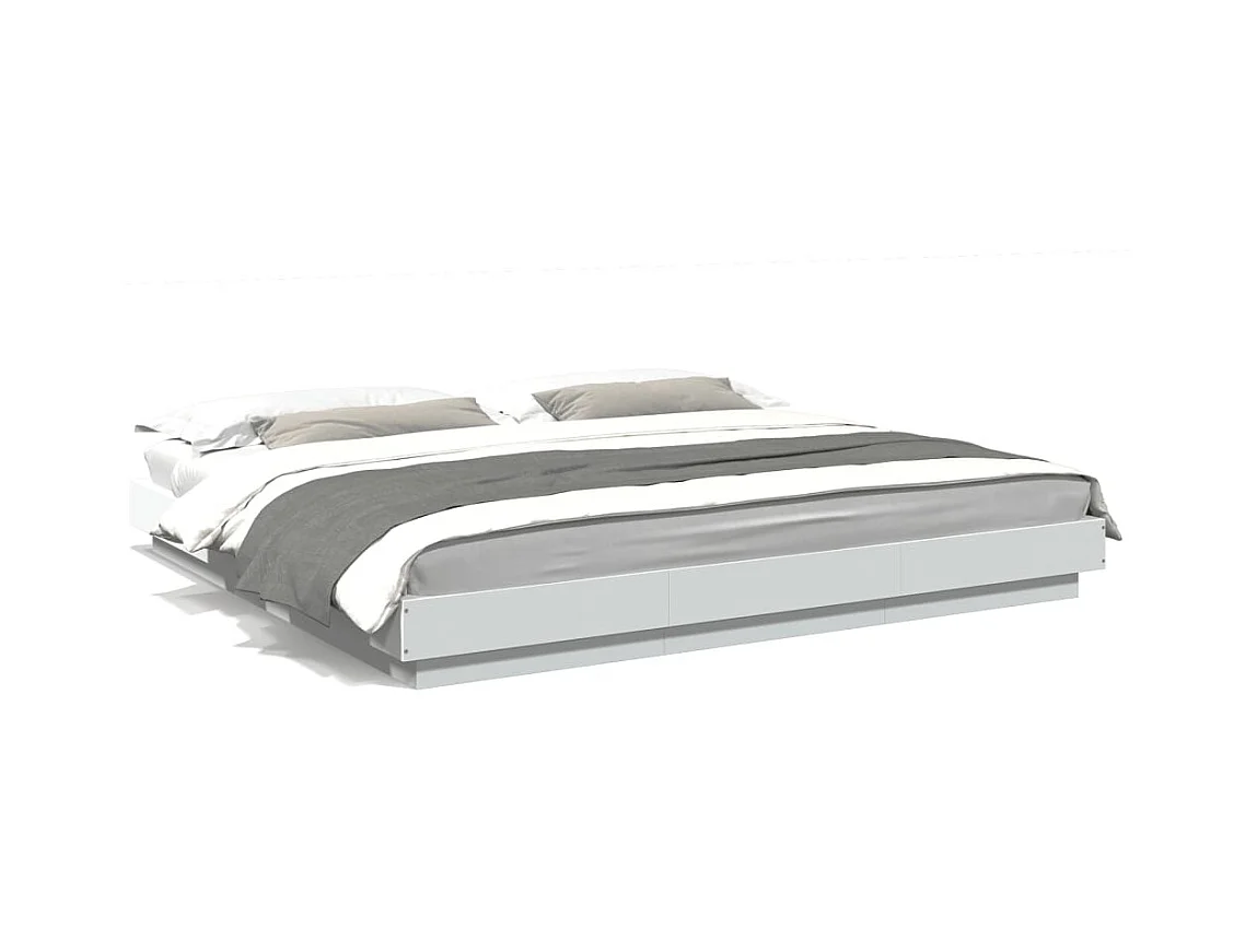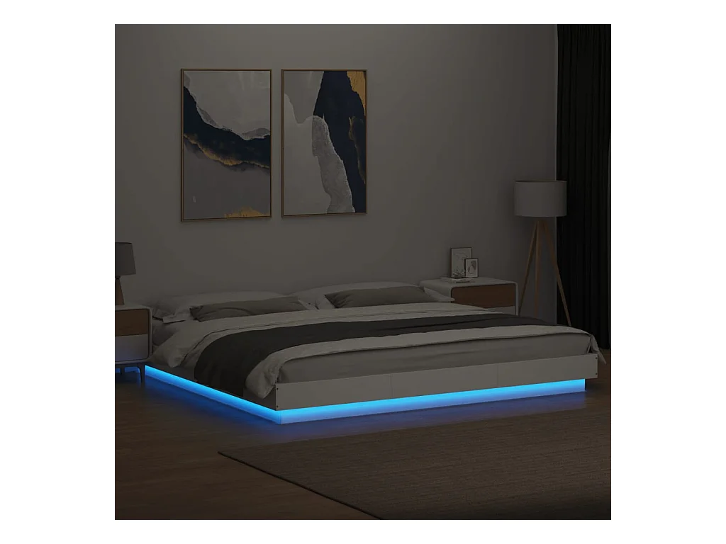 Cadre de lit avec lumières LED blanc 200x200 bois ingénierie
