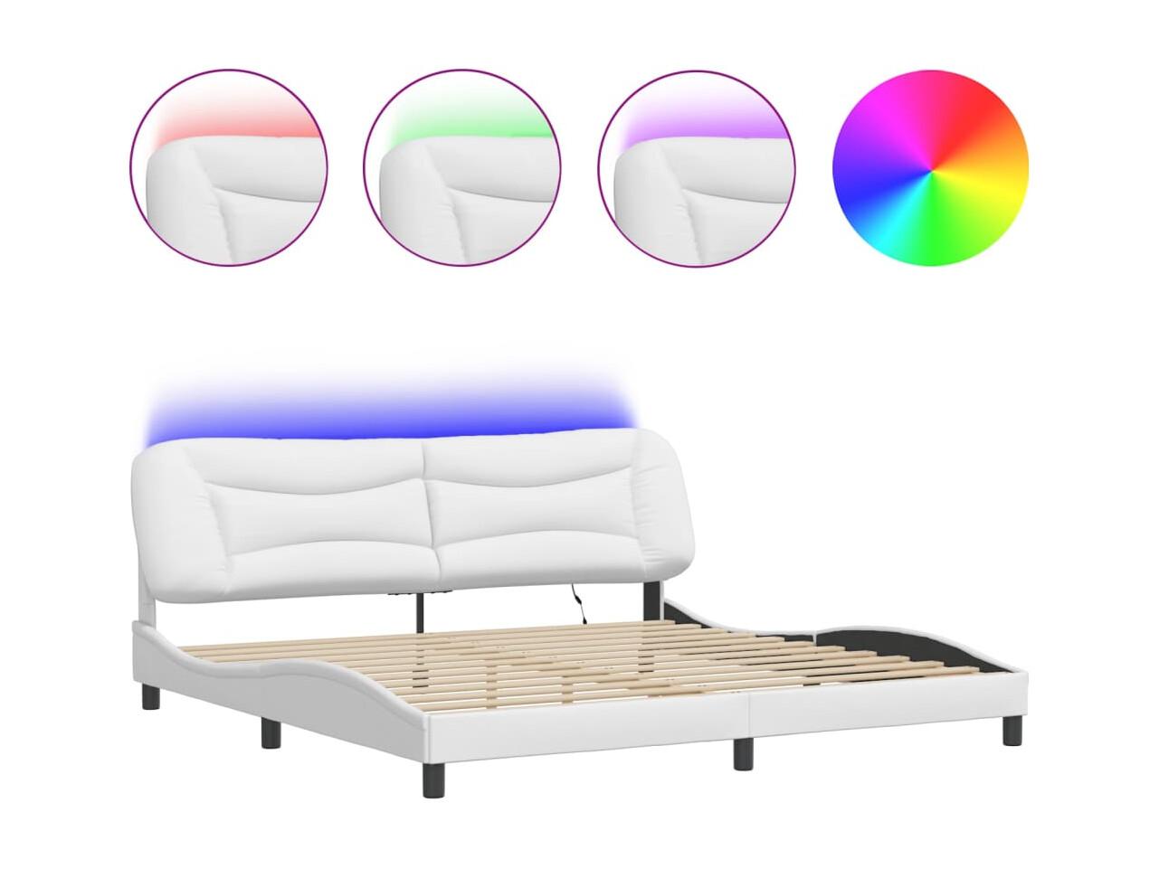 Cadre de lit avec lumières LED blanc 200x200 similicuir