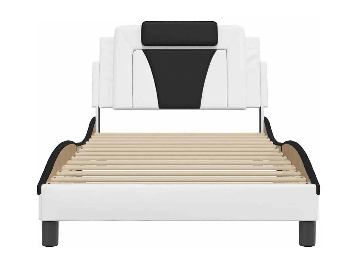 Cadre de lit avec lumières LED blanc noir 100x200 similicuir