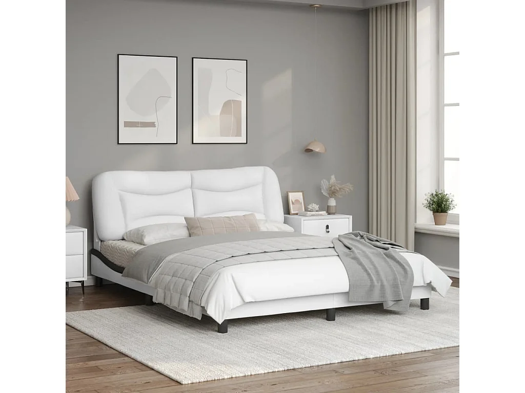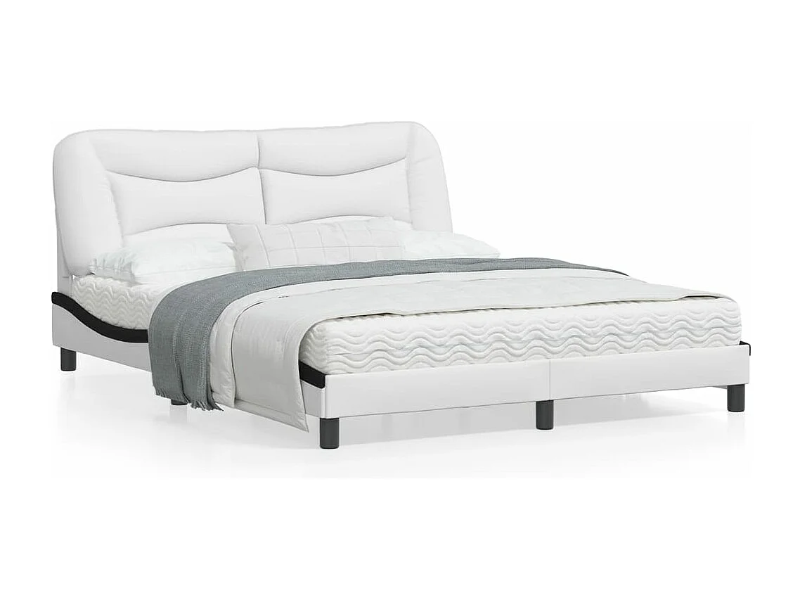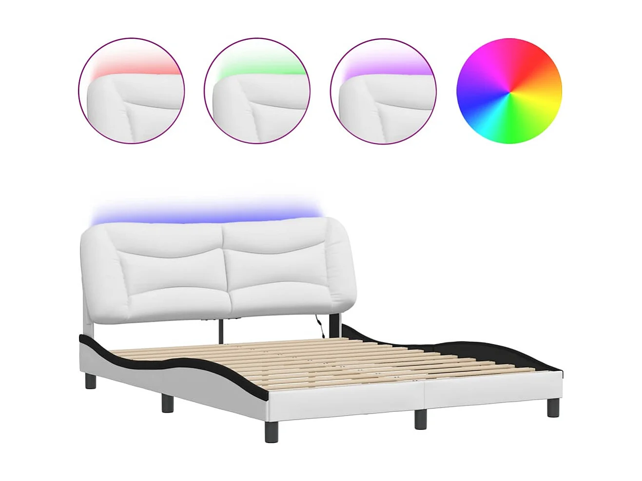 Cadre de lit avec lumières LED blanc noir 160x200 similicuir
