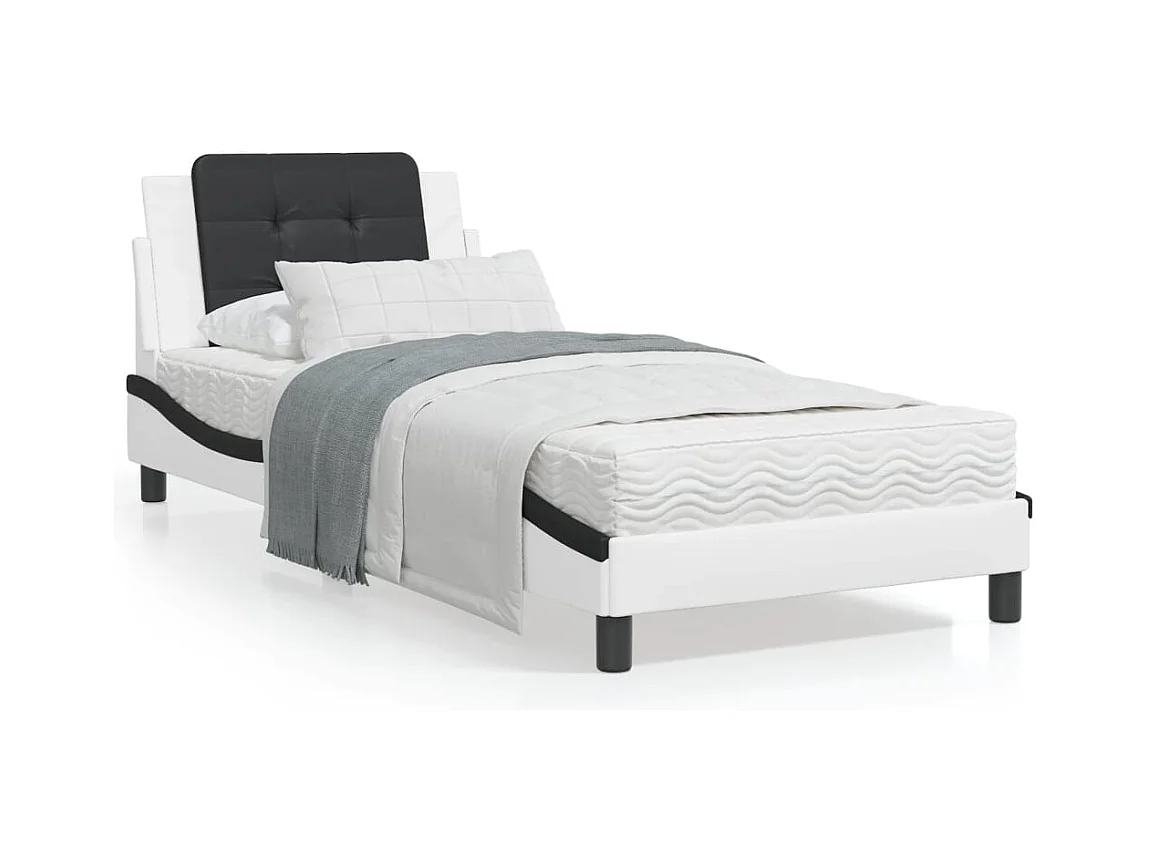 Cadre de lit avec lumières LED blanc noir 80x200 similicuir