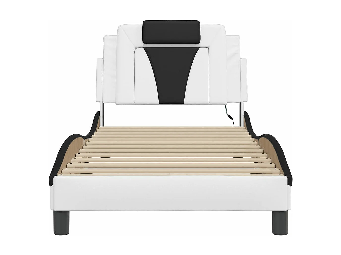 Cadre de lit avec lumières LED blanc noir 90x200 similicuir