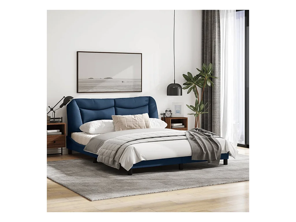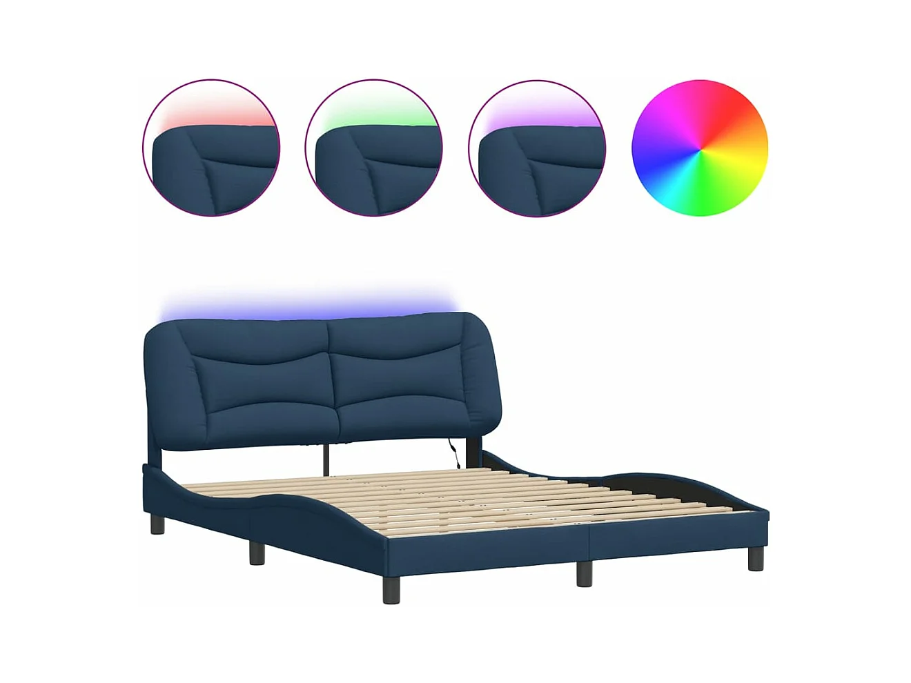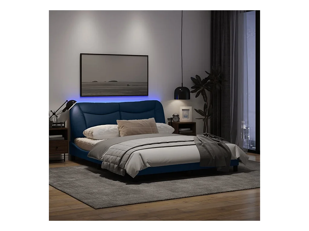 Cadre de lit avec lumières LED bleu 160x200 tissu