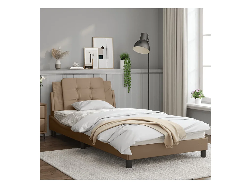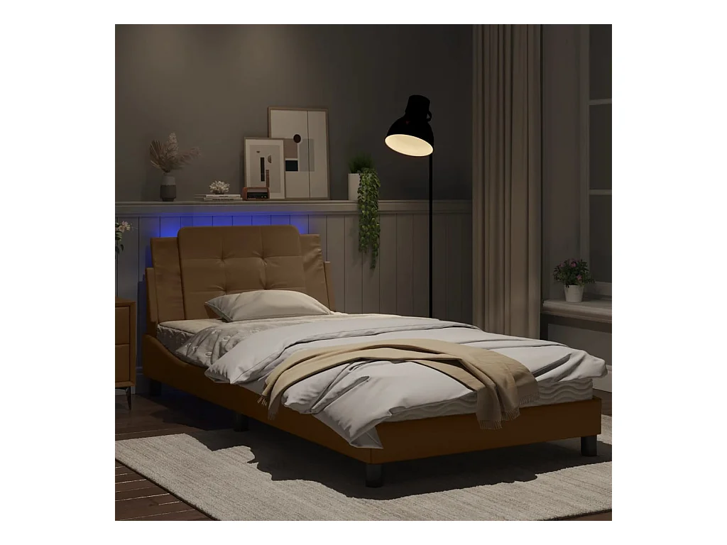 Cadre de lit avec lumières LED cappuccino 100x200 similicuir