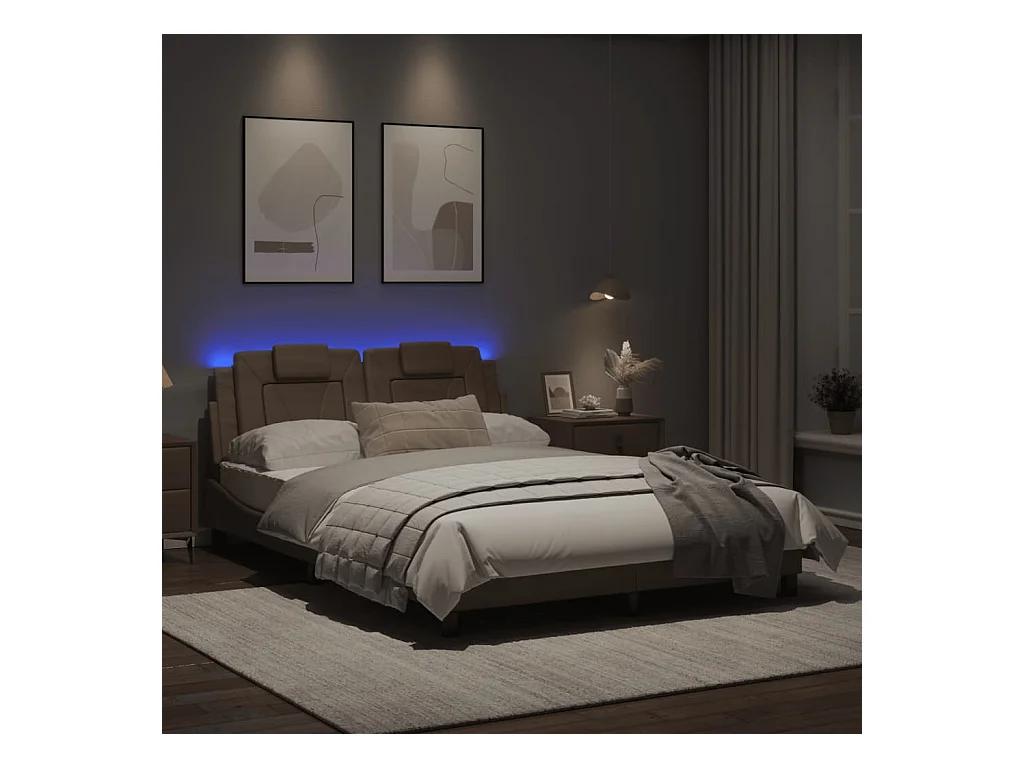Cadre de lit avec lumières LED cappuccino 120x200 similicuir
