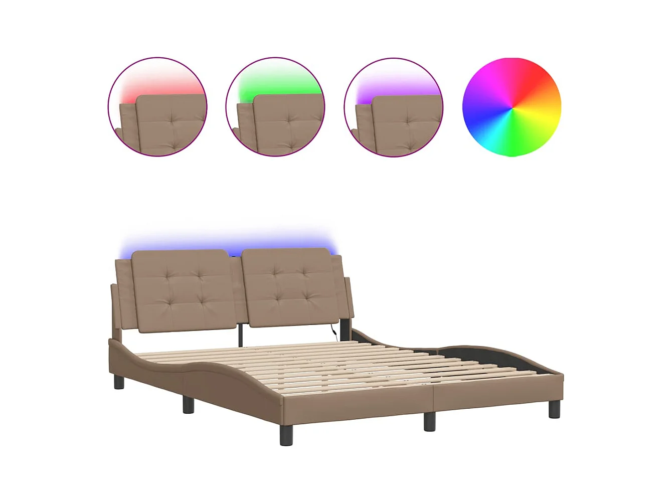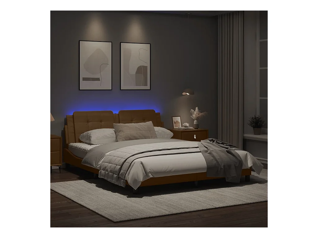Cadre de lit avec lumières LED cappuccino 160x200 similicuir