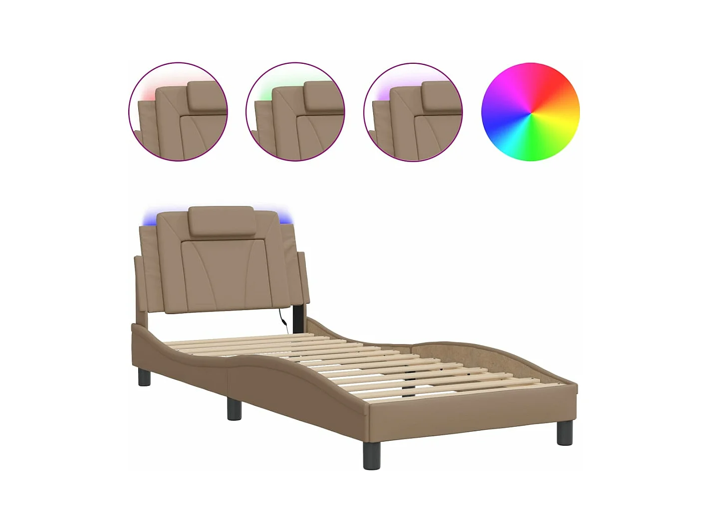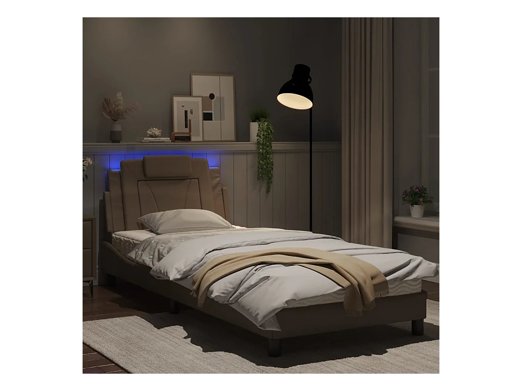 Cadre de lit avec lumières LED cappuccino 80x200 similicuir