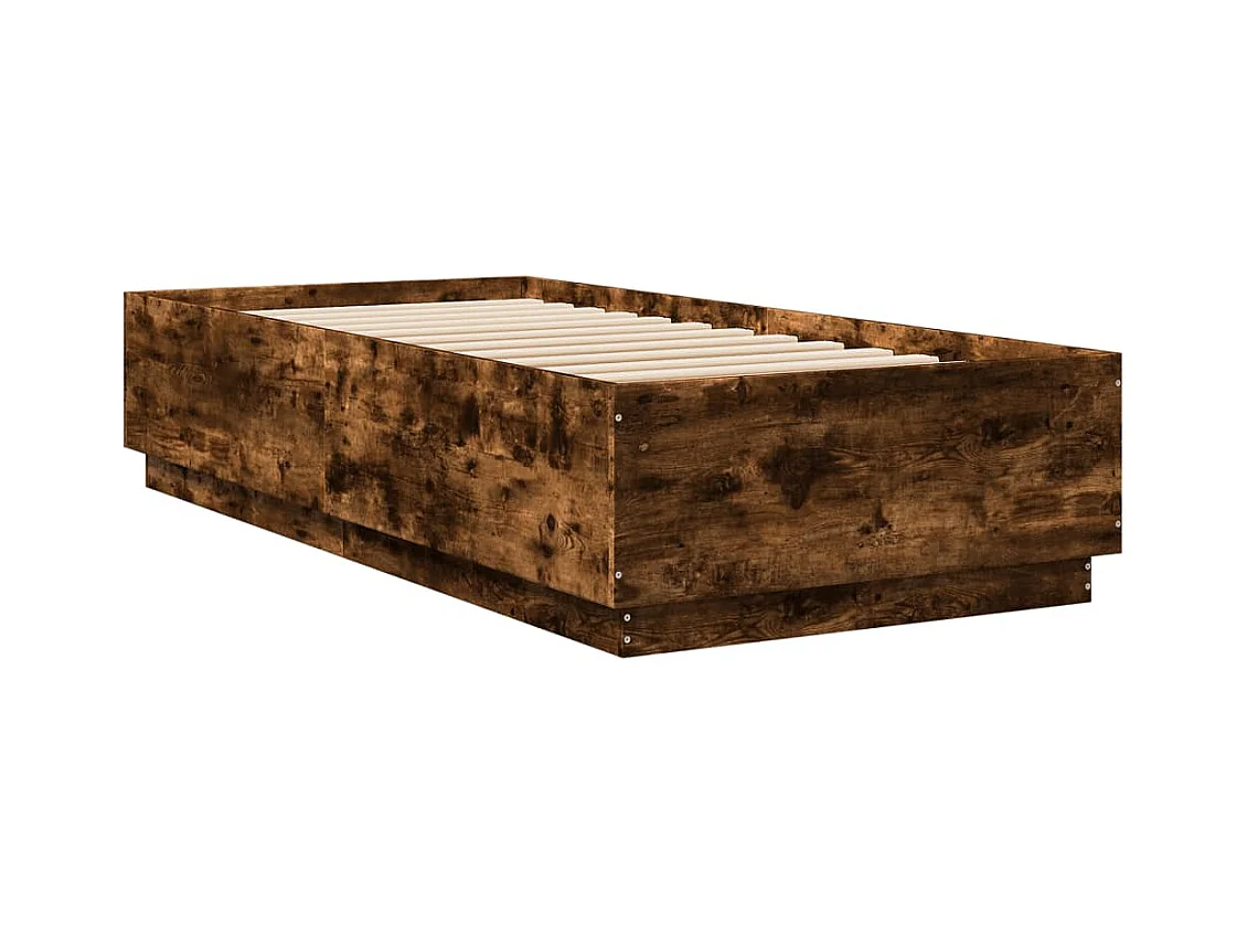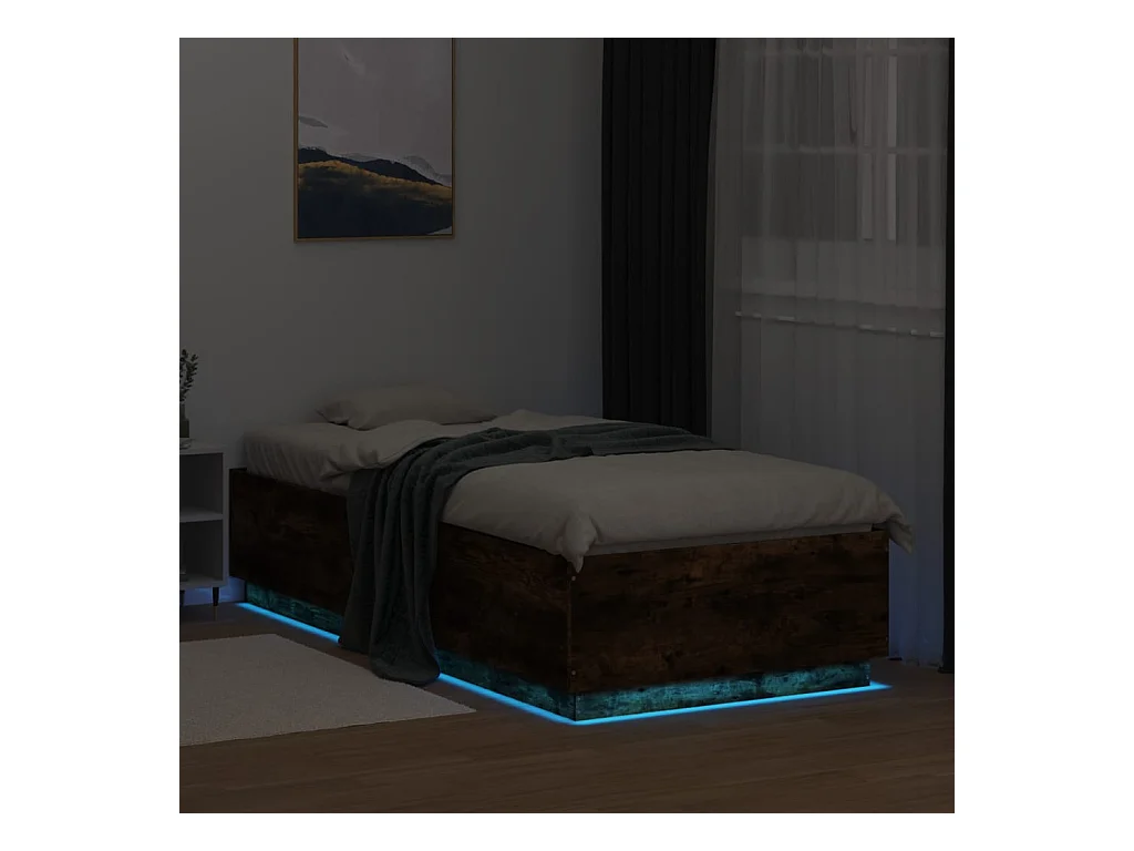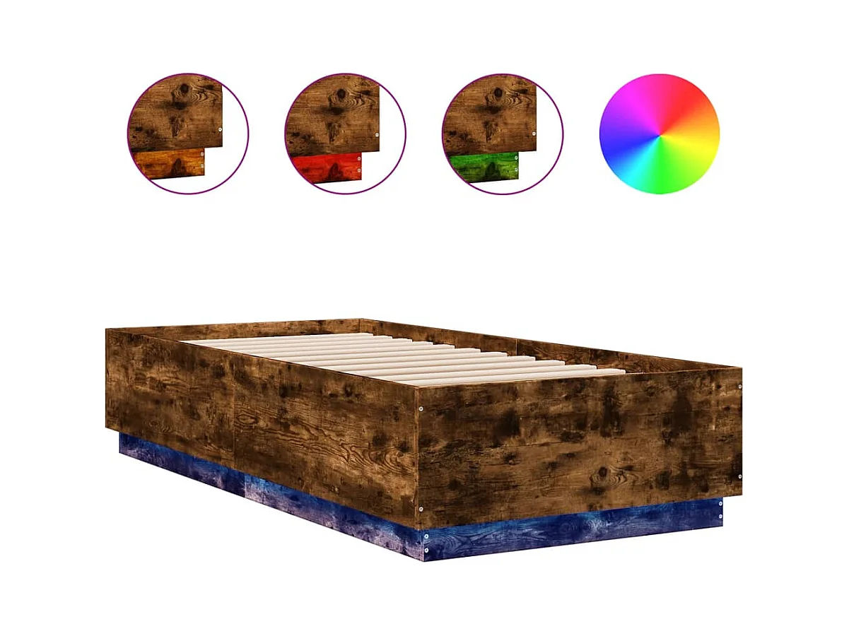 Cadre de lit avec lumières LED chêne fumé 100x200