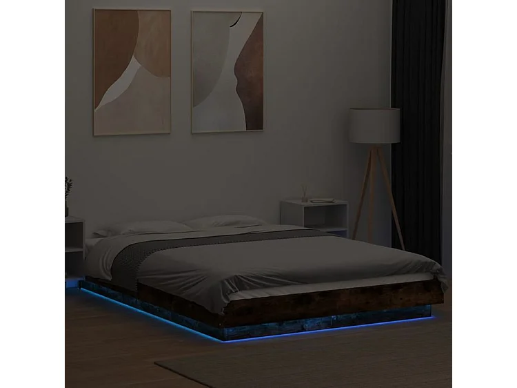 Cadre de lit avec lumières LED chêne fumé 120x200