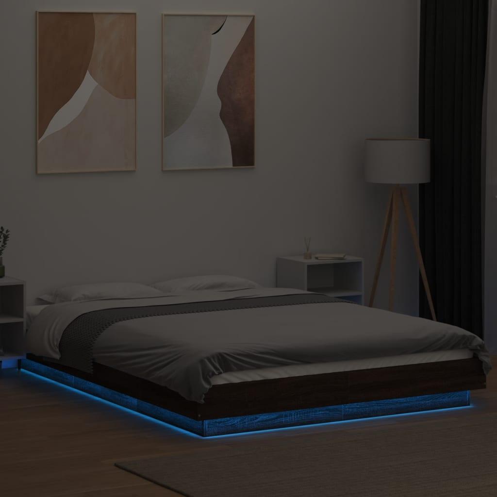 Cadre de lit avec lumières LED chêne marron 120x200 cm