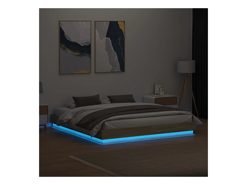Cadre de lit avec lumières LED chêne sonoma 200x200