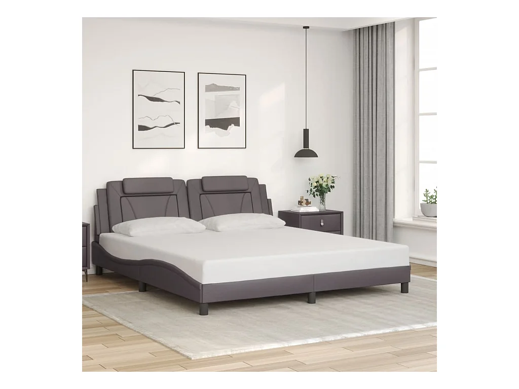 Cadre de lit avec lumières LED gris 180x200 cm similicuir