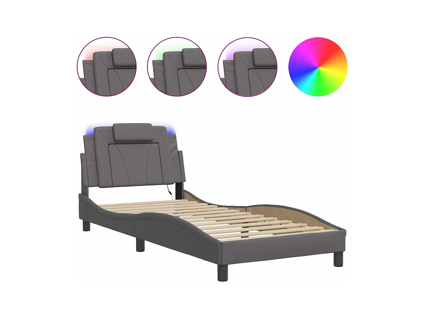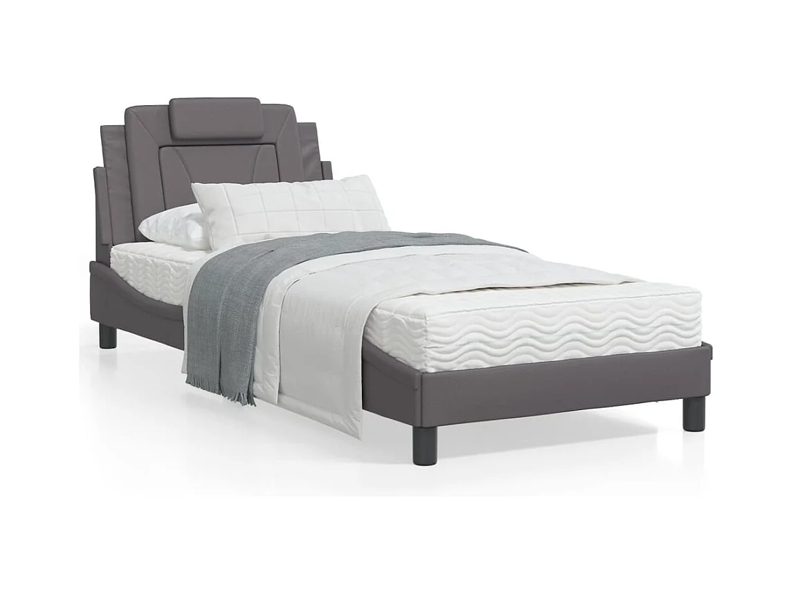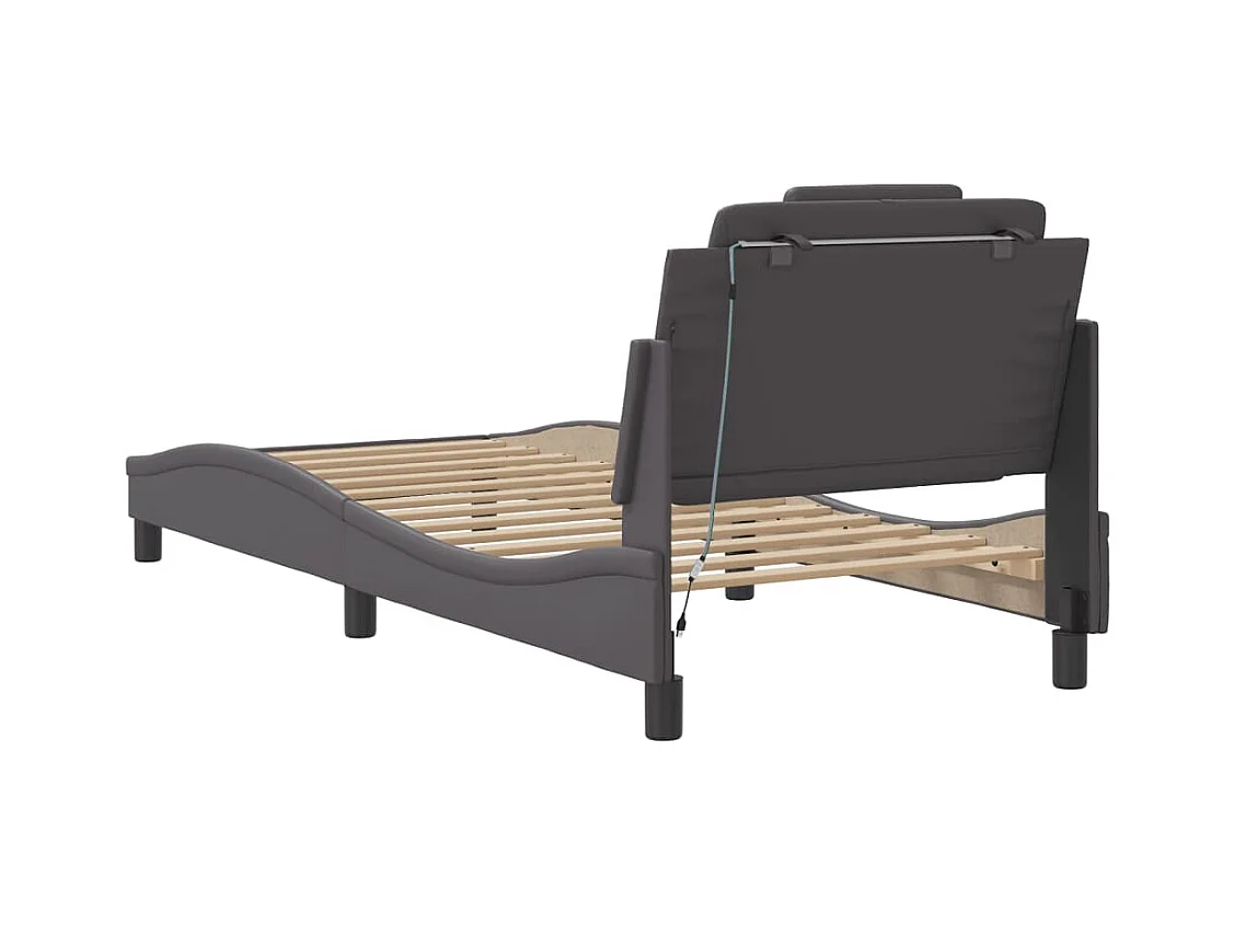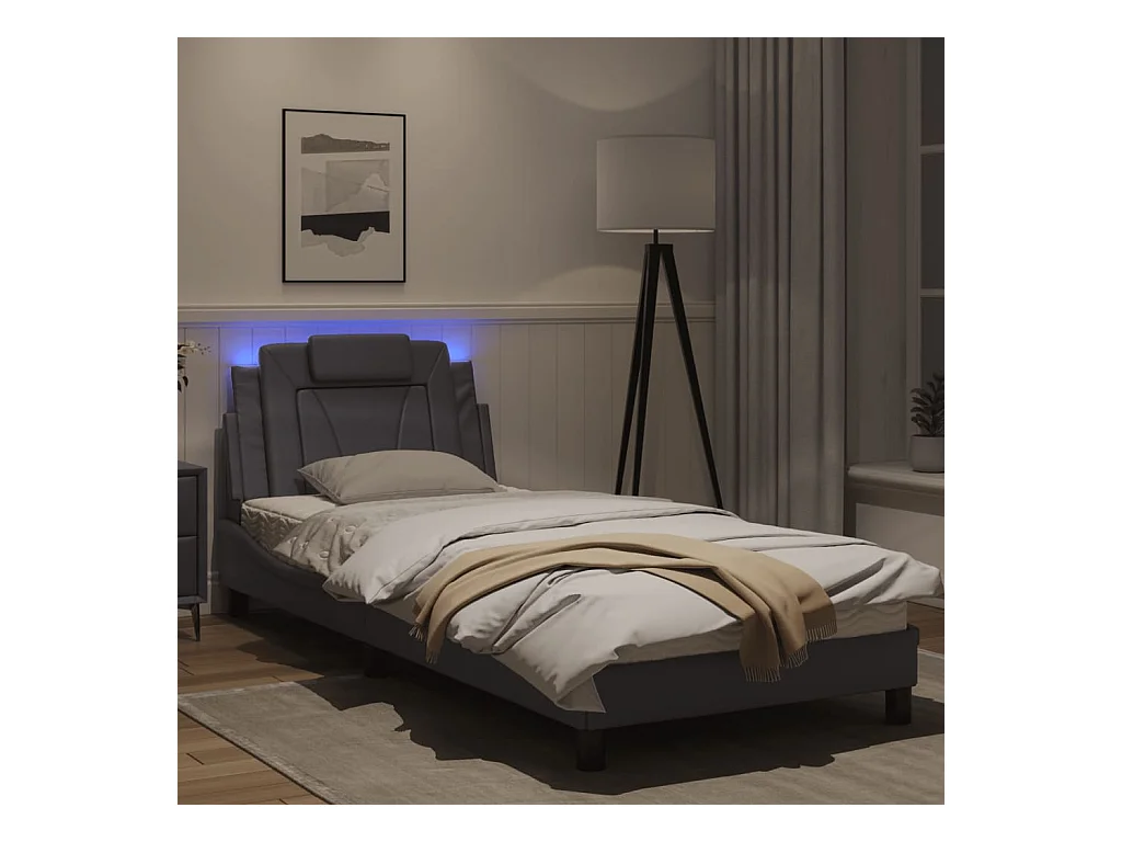 Cadre de lit avec lumières LED gris 90x190 similicuir
