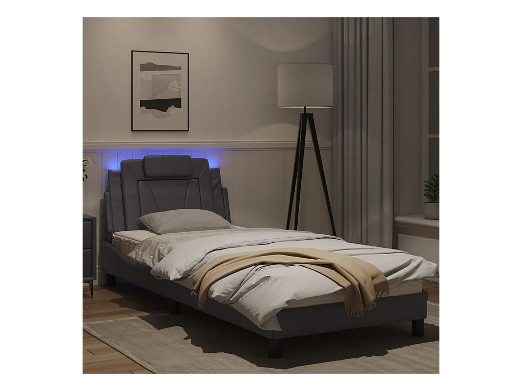 Cadre de lit avec lumières LED gris 90x200 similicuir