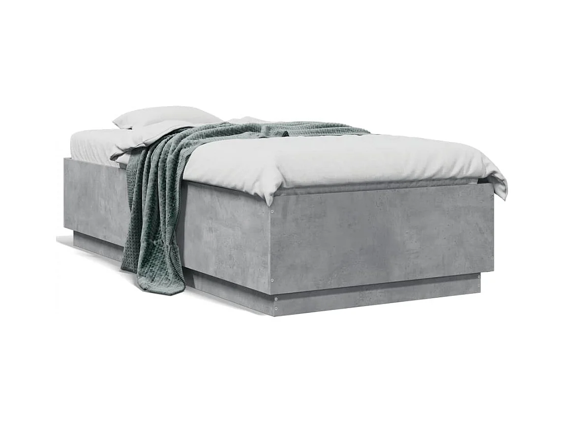 Cadre de lit avec lumières LED gris béton 75x190