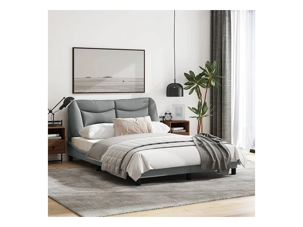 Cadre de lit avec lumières LED gris clair 140x200 tissu