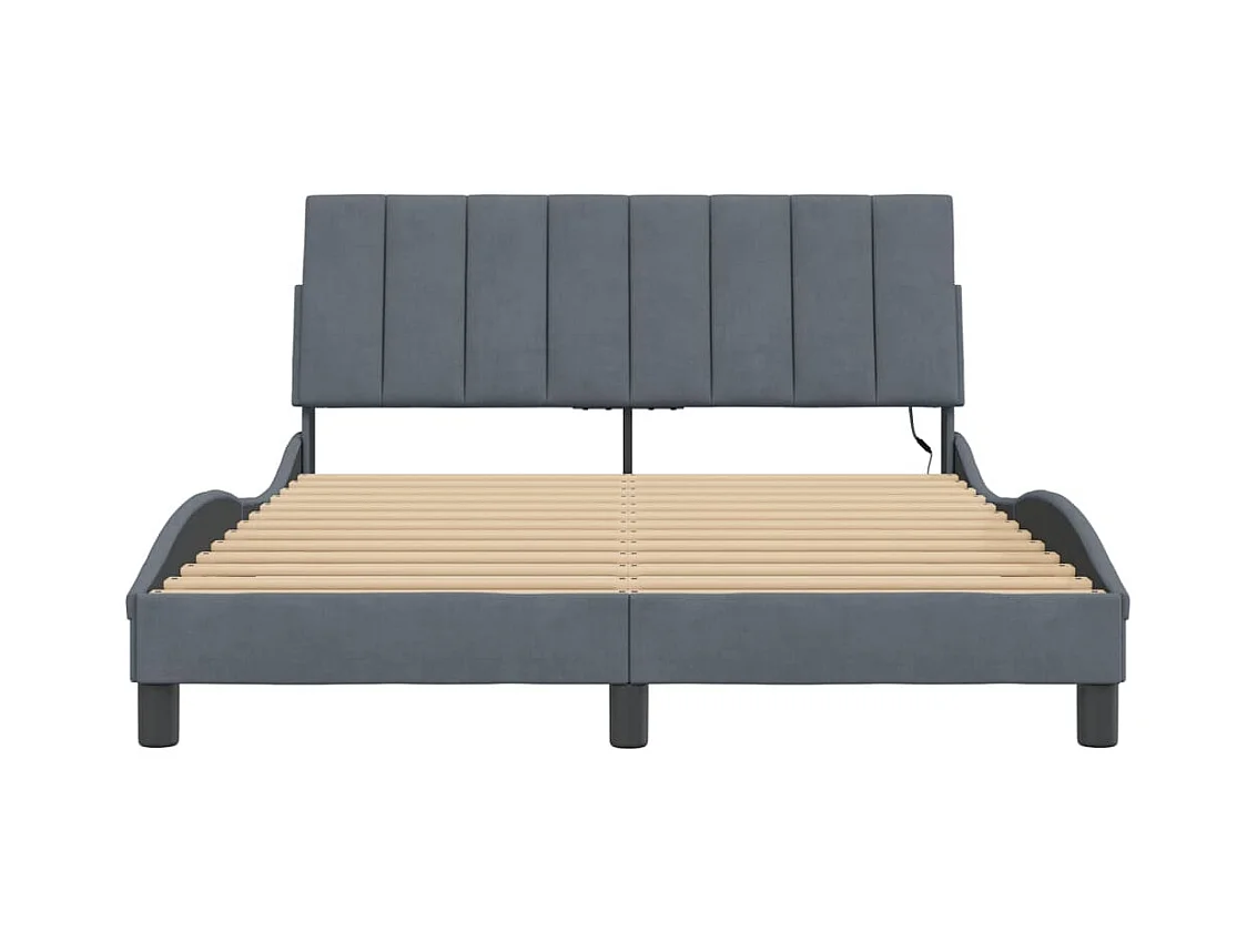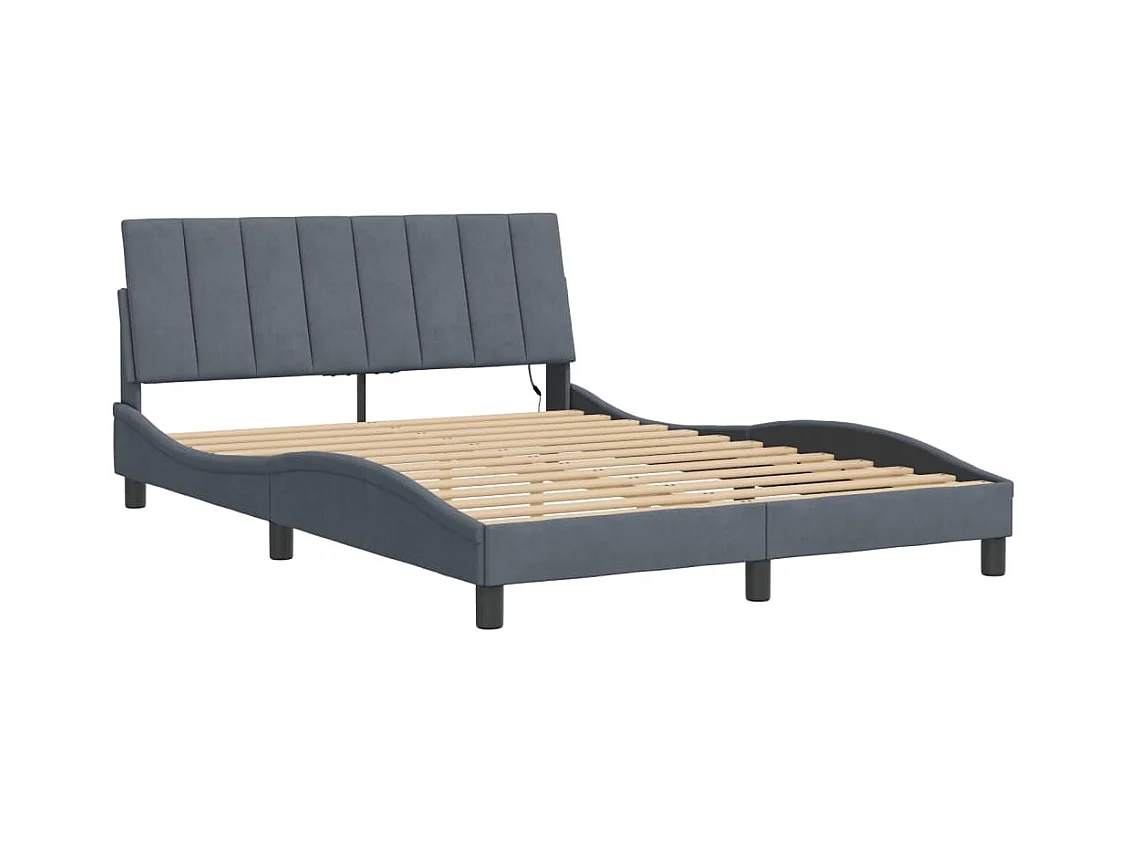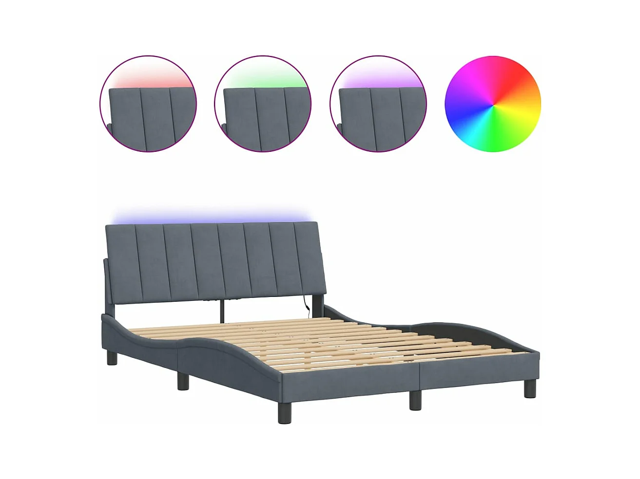 Cadre de lit avec lumières LED gris foncé 120x200 velours