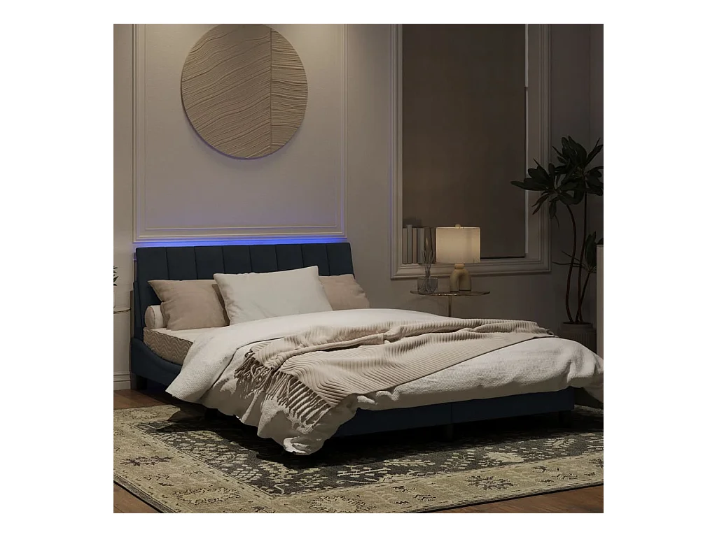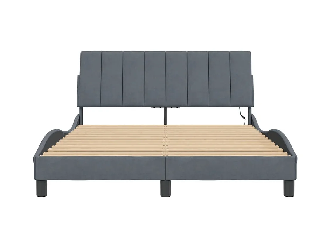 Cadre de lit avec lumières LED gris foncé 140x190 velours