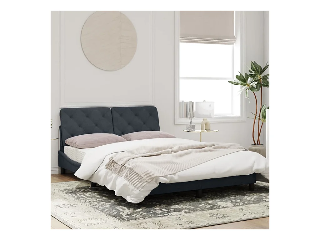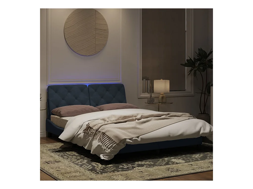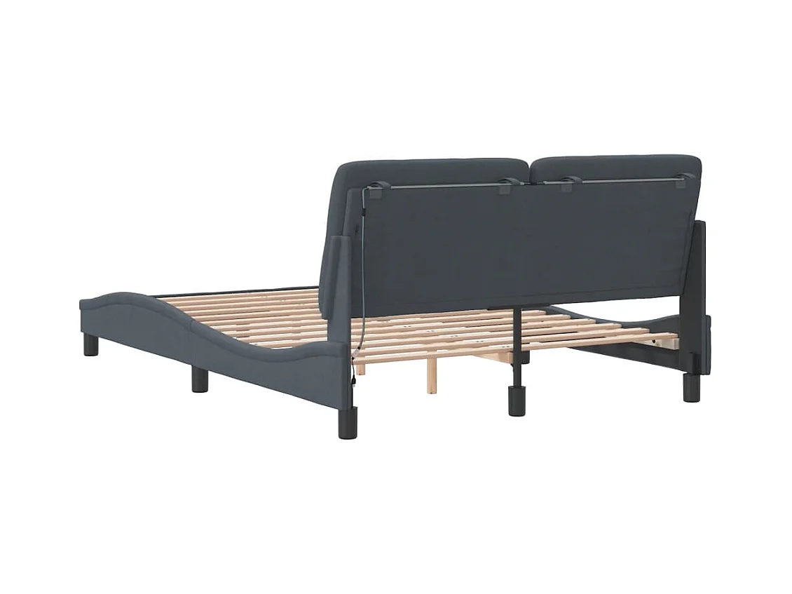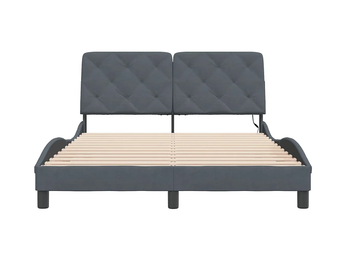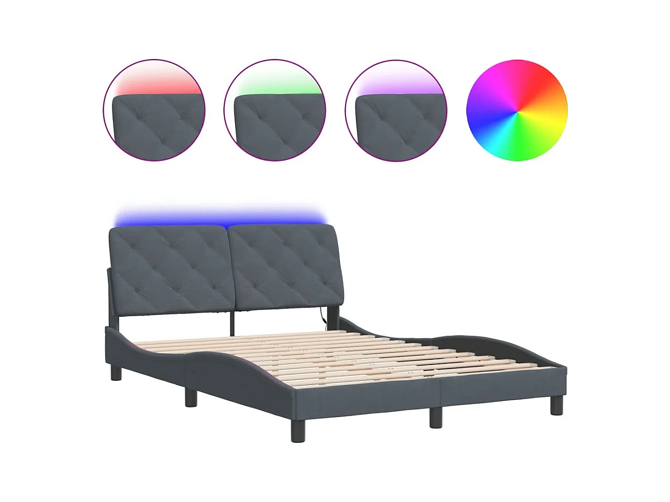 Cadre de lit avec lumières LED gris foncé 140x200 velours