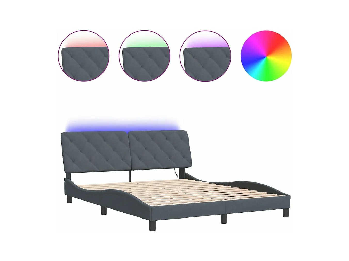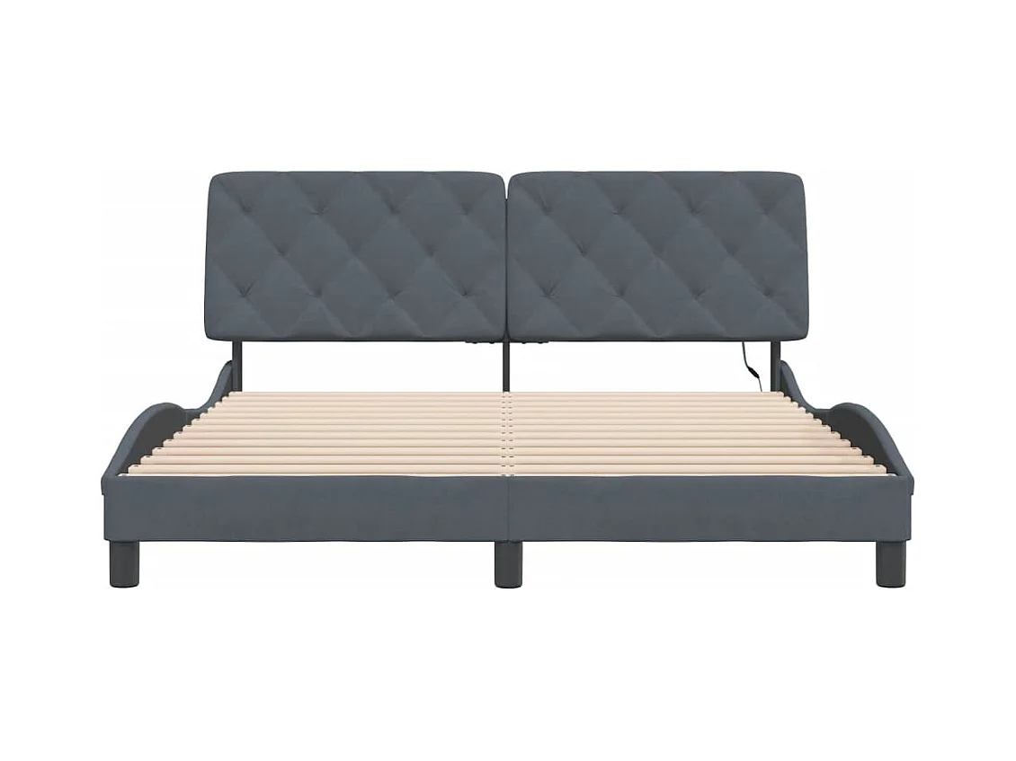 Cadre de lit avec lumières LED gris foncé 160x200 velours