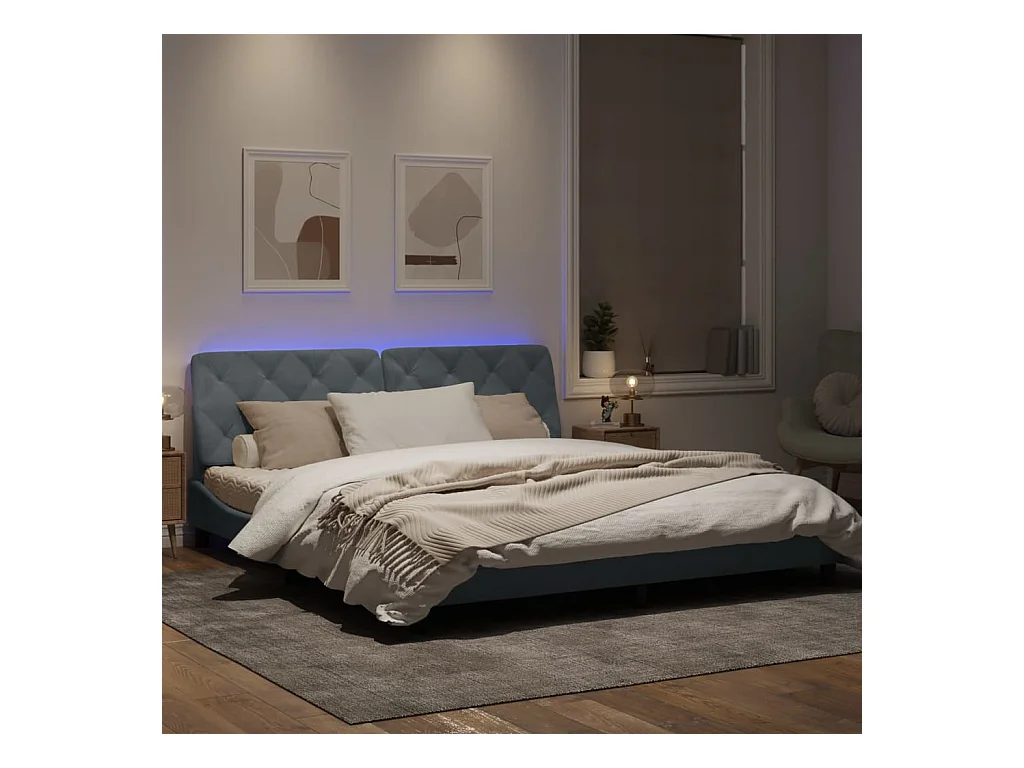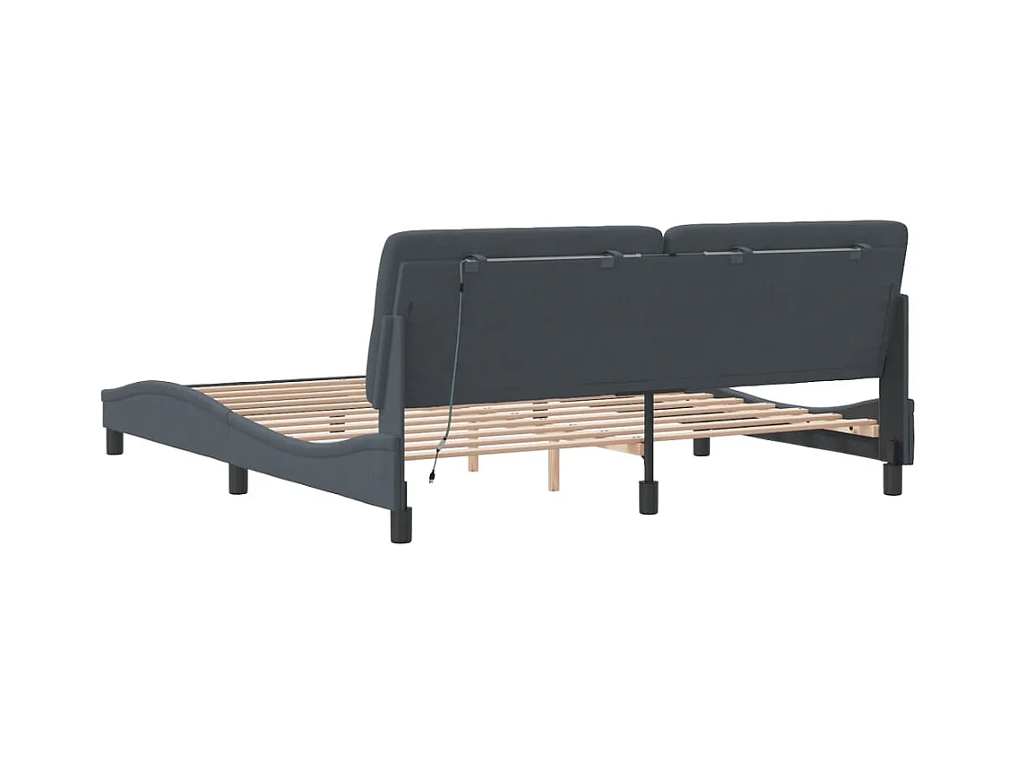 Cadre de lit avec lumières LED gris foncé 180x200 cm velours