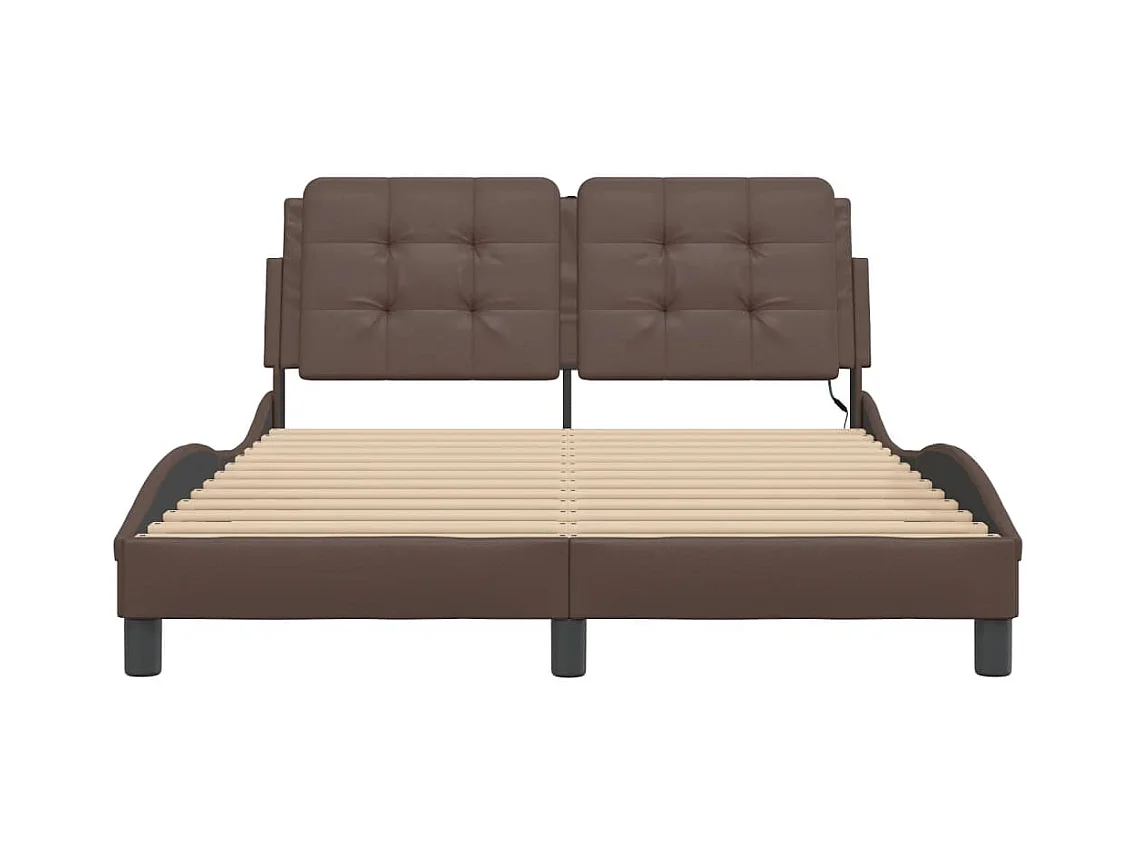 Cadre de lit avec lumières LED marron 120x200 similicuir