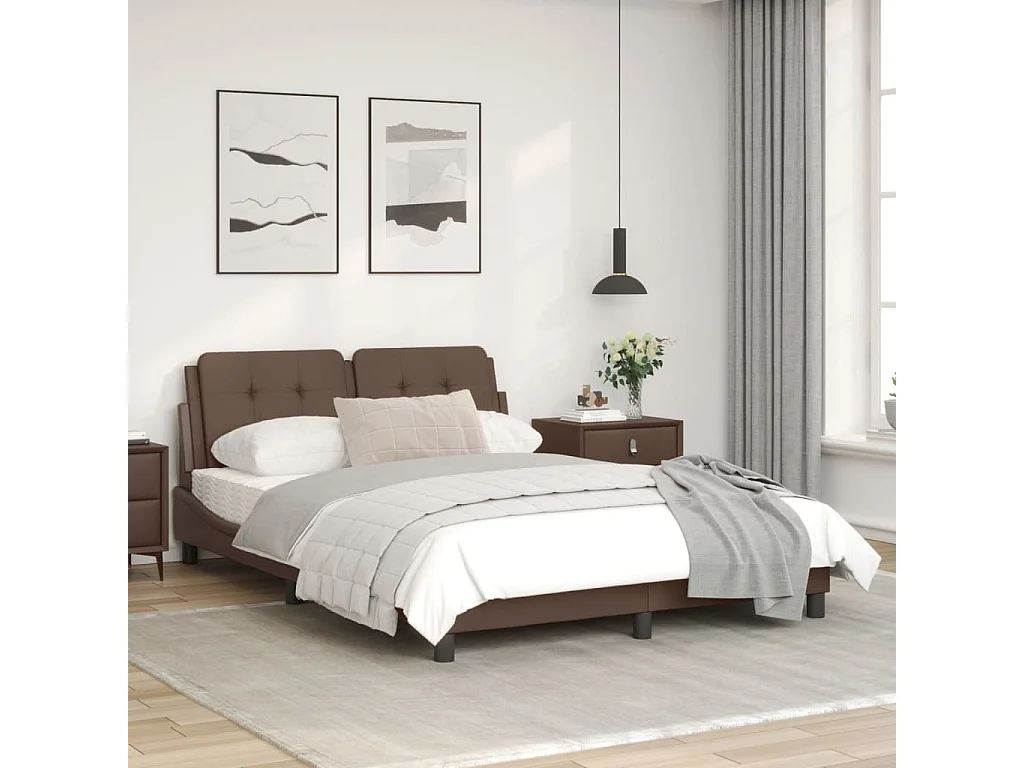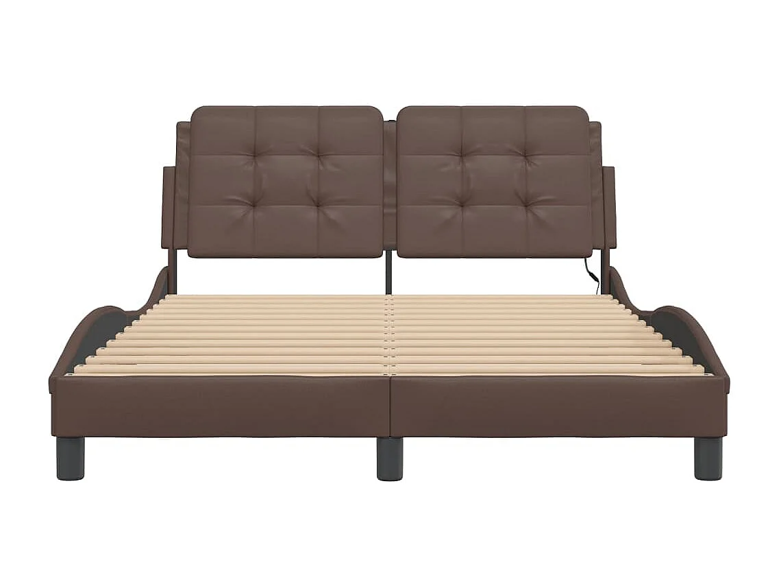 Cadre de lit avec lumières LED marron 140x200 similicuir