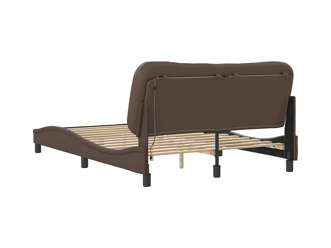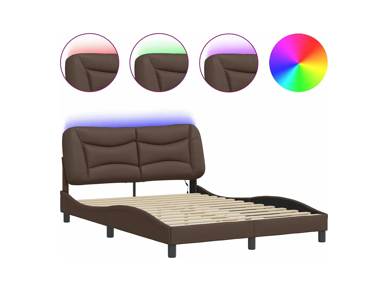 Cadre de lit avec lumières LED marron 140x200 similicuir