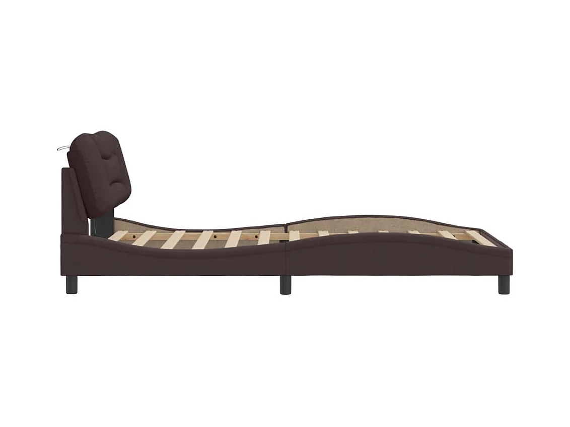 Cadre de lit avec lumières LED marron foncé 100x200 tissu