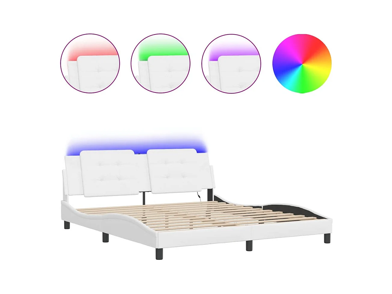 Cadre de lit avec lumières LED noir 180x200 similicuir