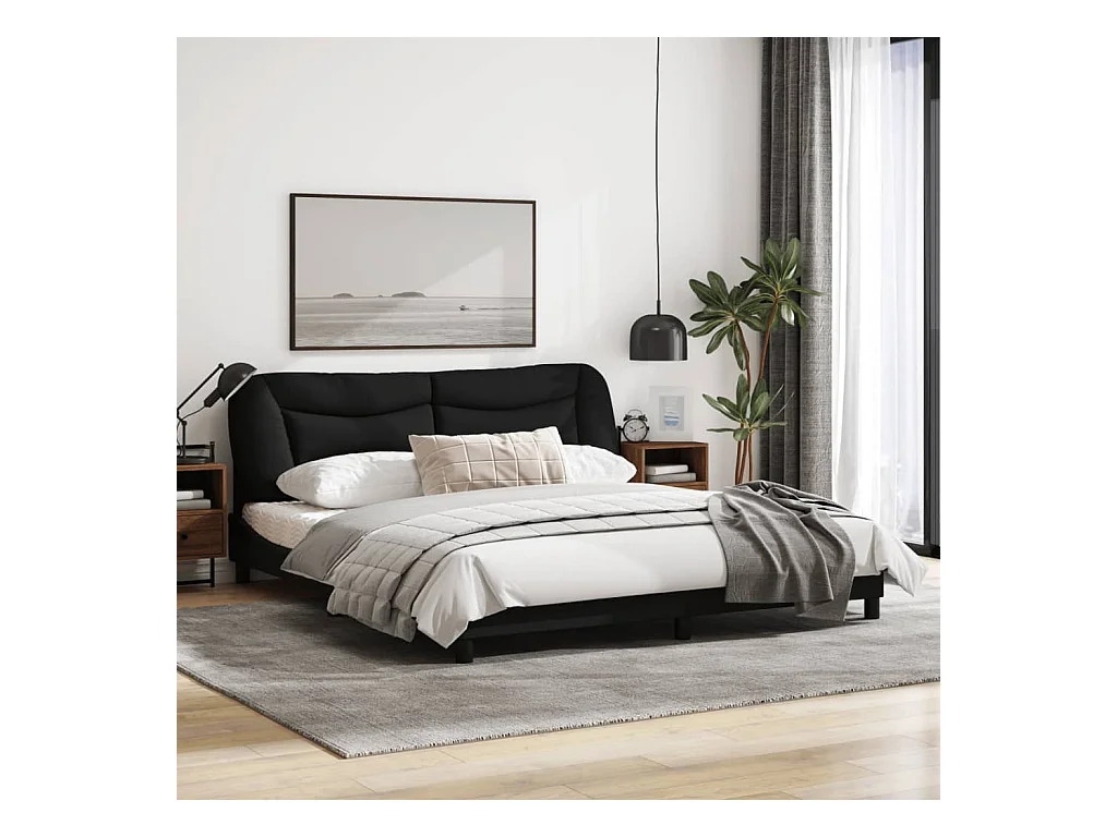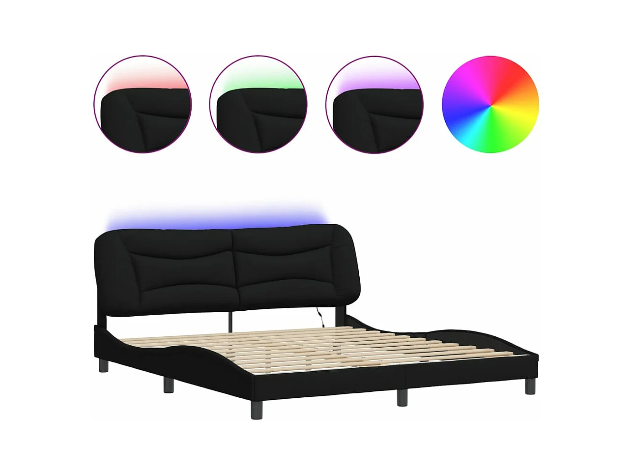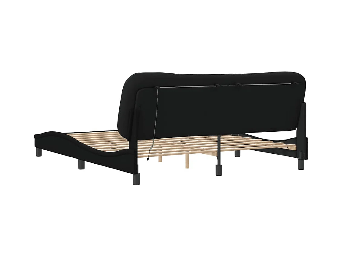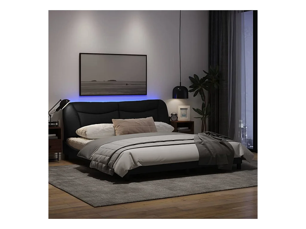 Cadre de lit avec lumières LED noir 180x200 tissu