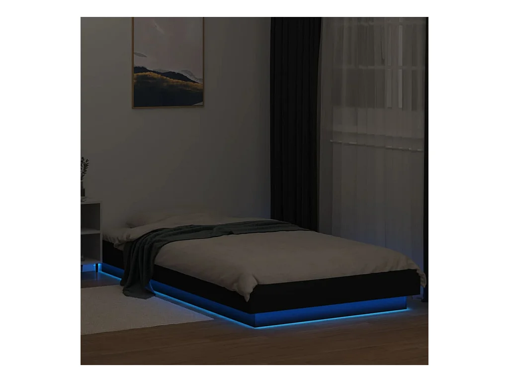 Cadre de lit avec lumières LED noir 90x190 bois d’ingénierie