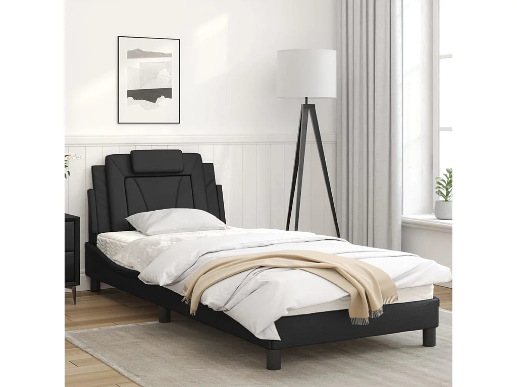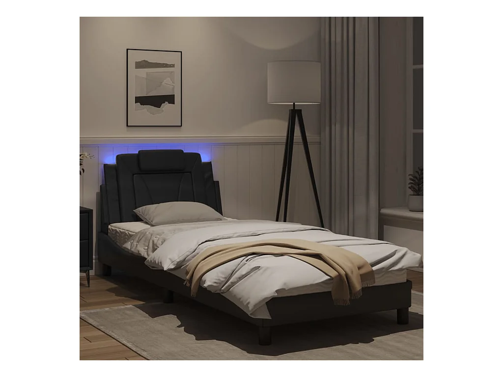 Cadre de lit avec lumières LED noir 90x200 similicuir