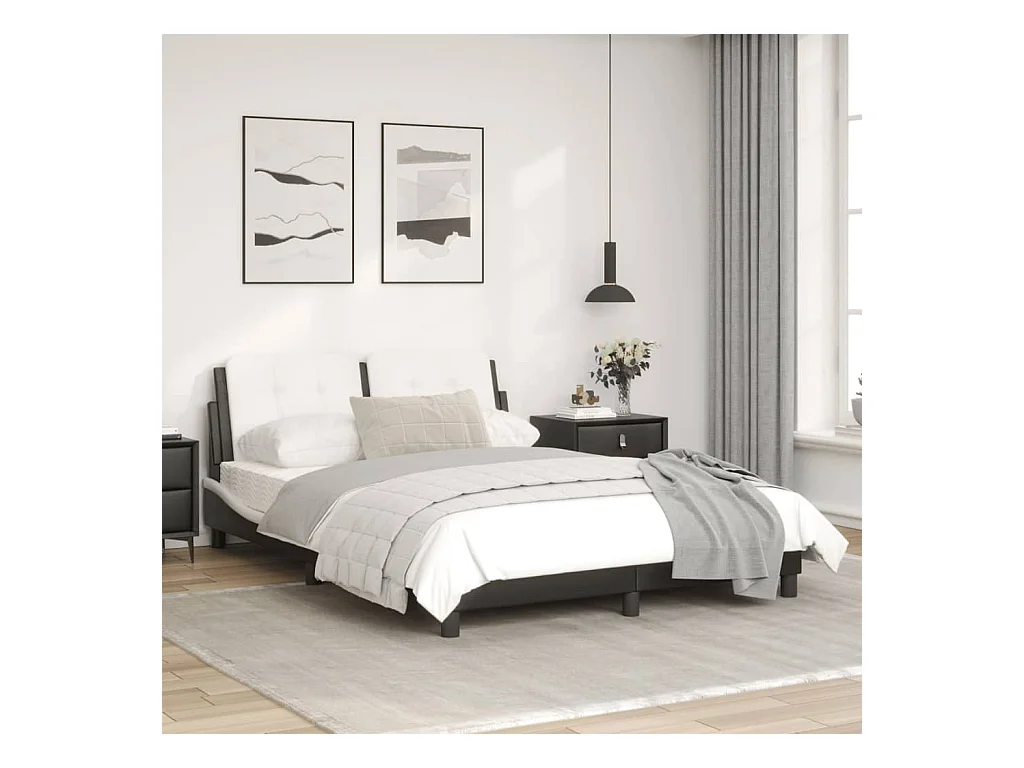 Cadre de lit avec lumières LED noir blanc 120x200 similicuir