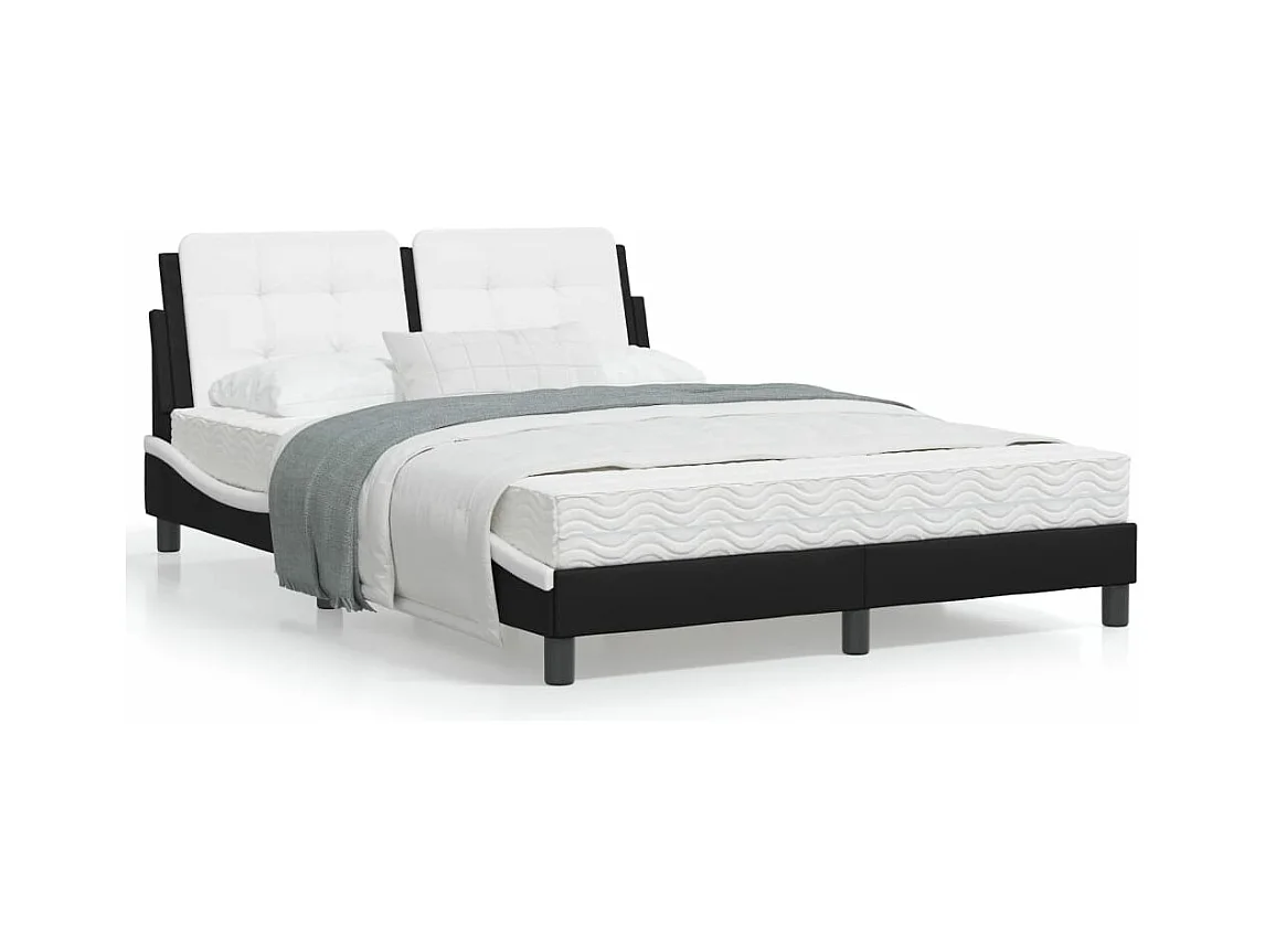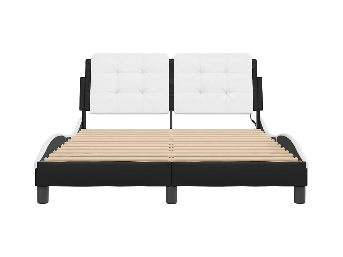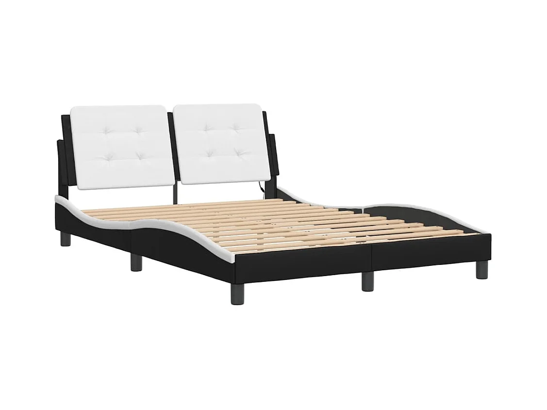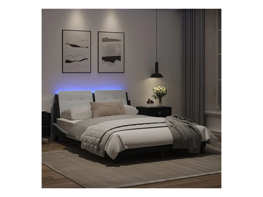 Cadre de lit avec lumières LED noir blanc 140x190 similicuir
