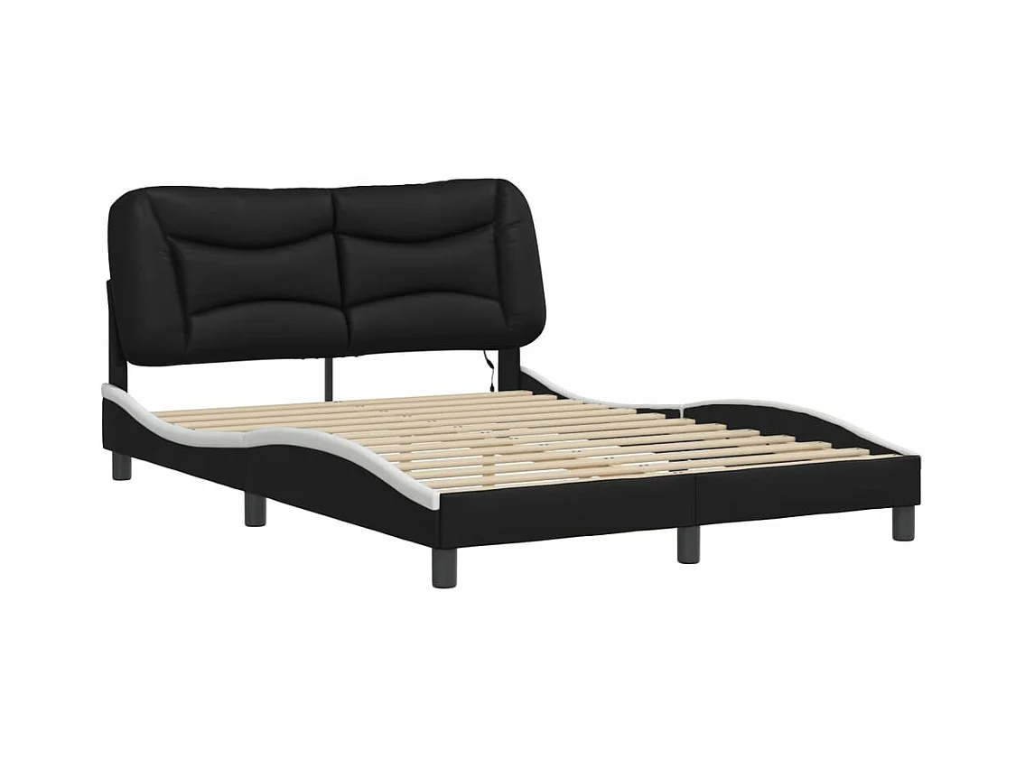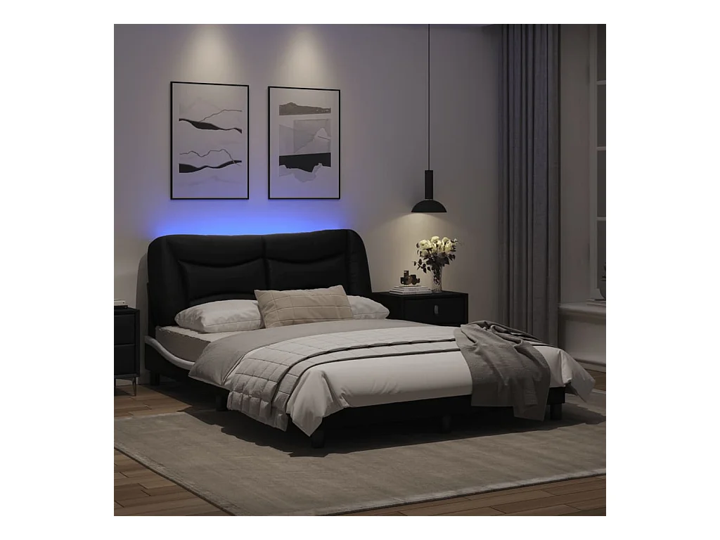 Cadre de lit avec lumières LED noir blanc 140x200 similicuir