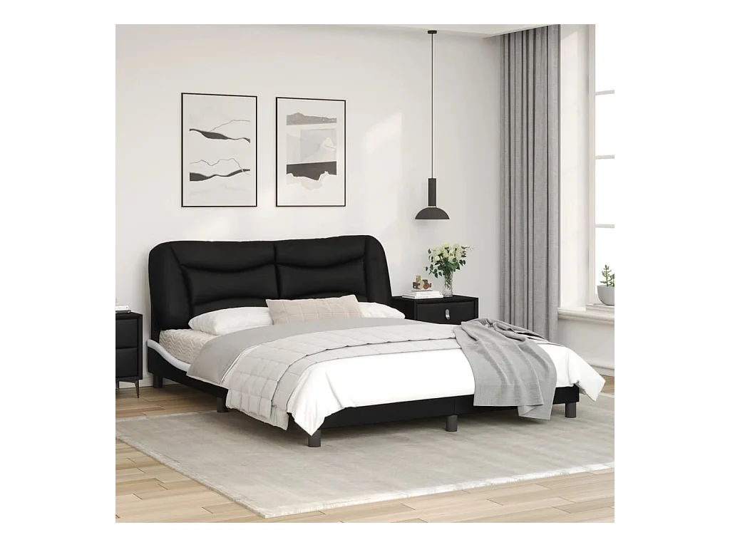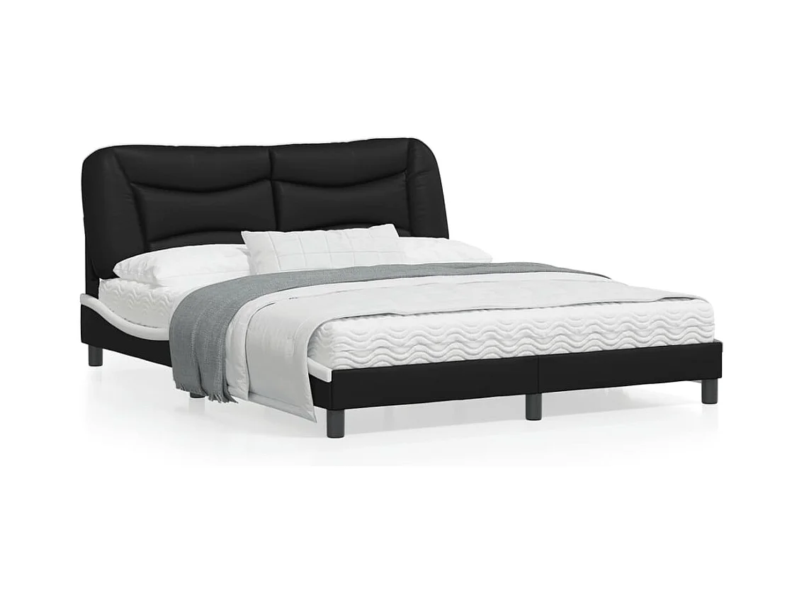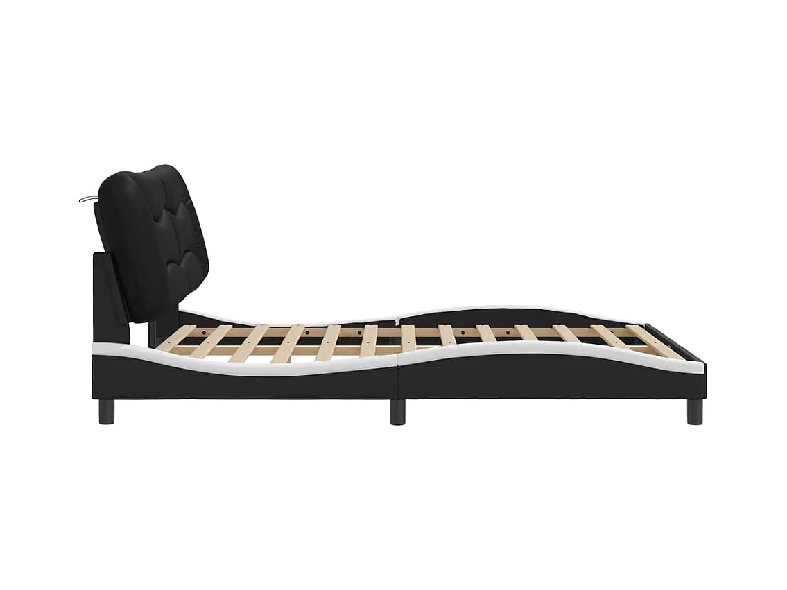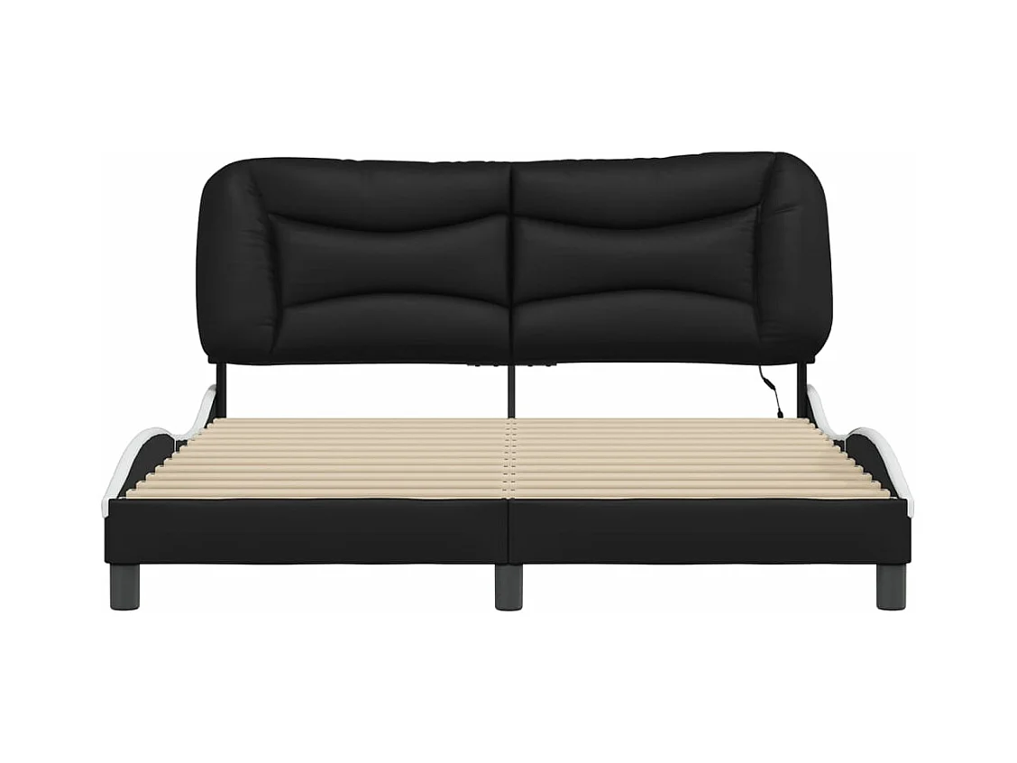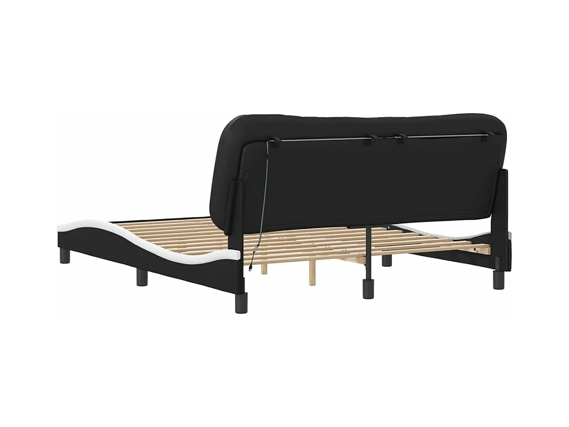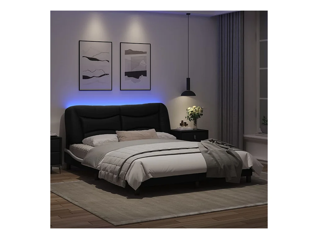 Cadre de lit avec lumières LED noir blanc 160x200 similicuir