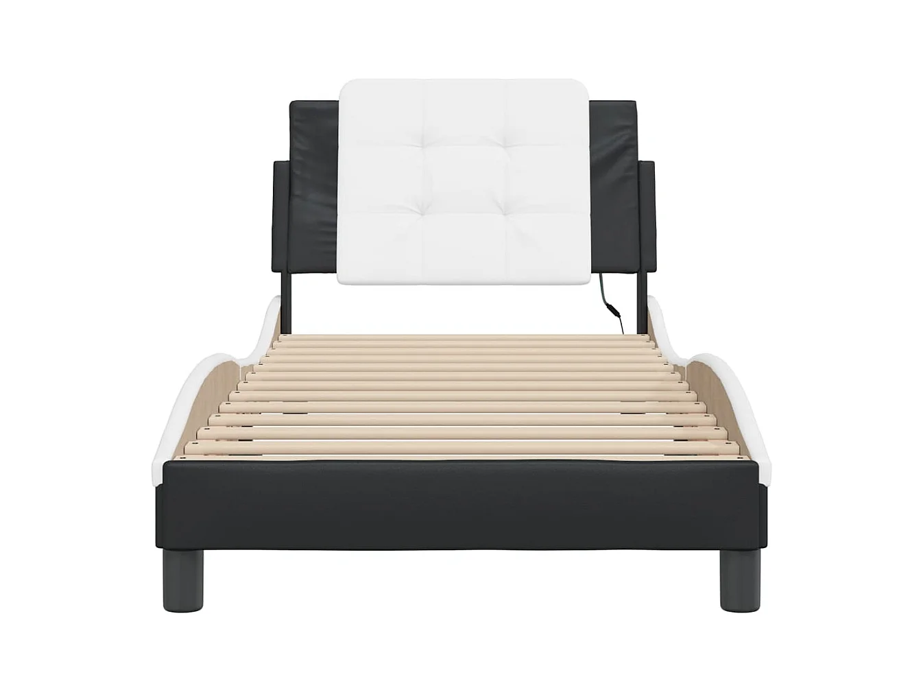 Cadre de lit avec lumières LED noir blanc 80x200 similicuir