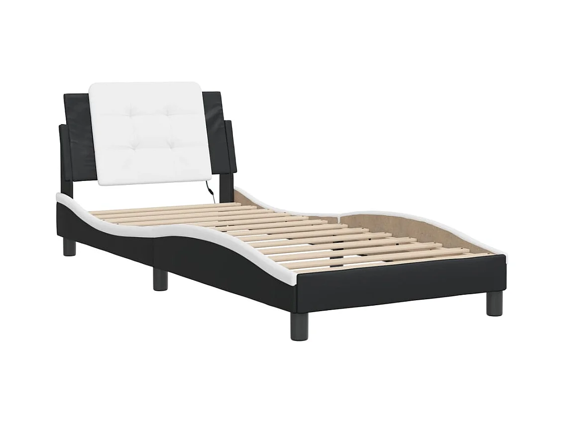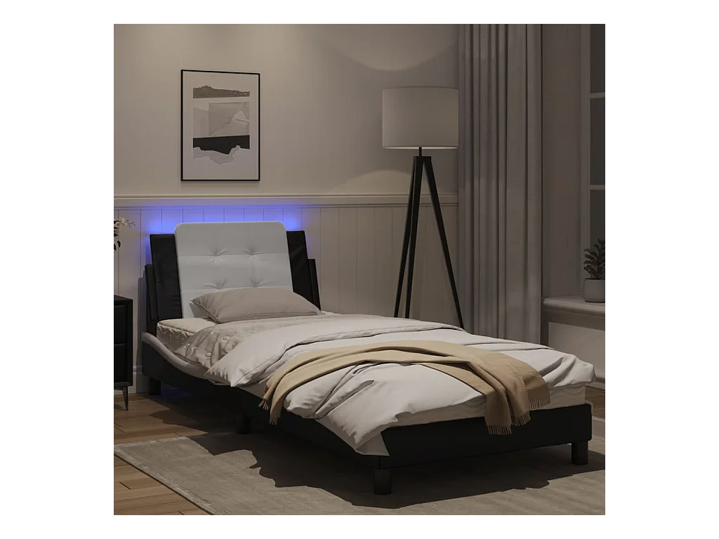Cadre de lit avec lumières LED noir blanc 90x190 similicuir