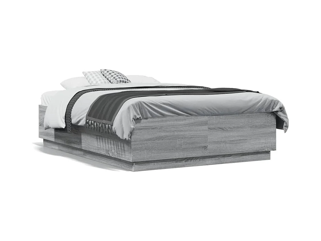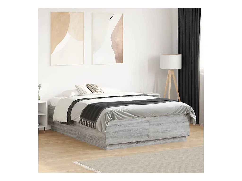 Cadre de lit avec lumières LED sonoma gris 120x190