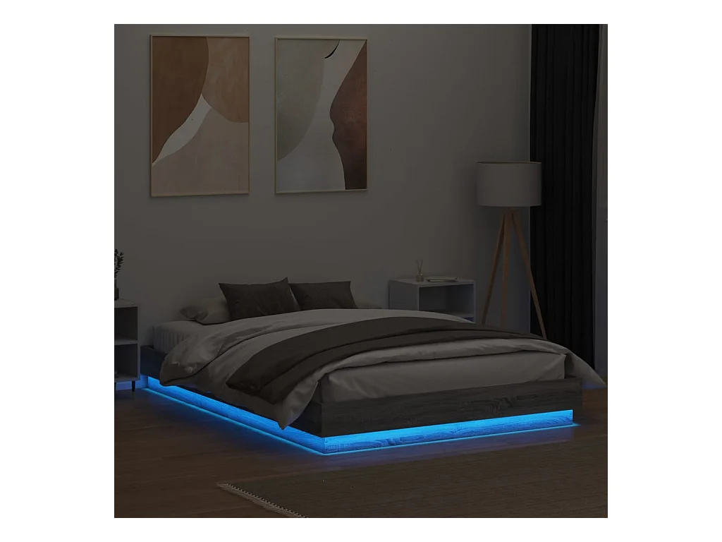Cadre de lit avec lumières LED sonoma gris 120x200