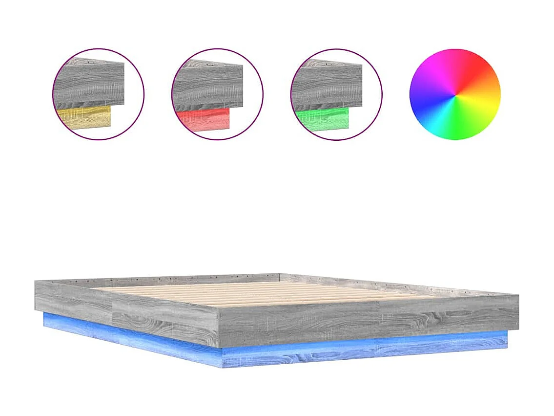 Cadre de lit avec lumières LED sonoma gris 140x200