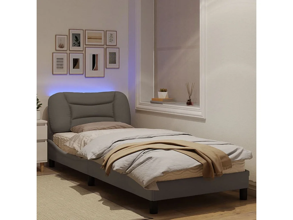 Cadre de lit avec lumières LED taupe 90x200 tissu