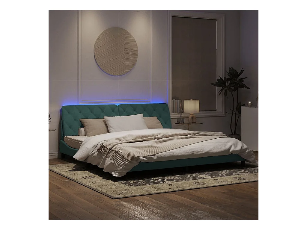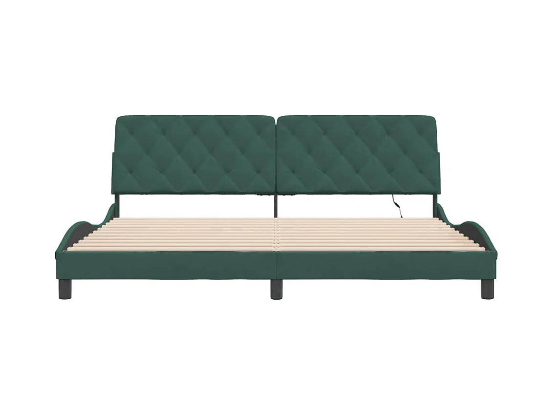 Cadre de lit avec lumières LED vert foncé 200x200 velours