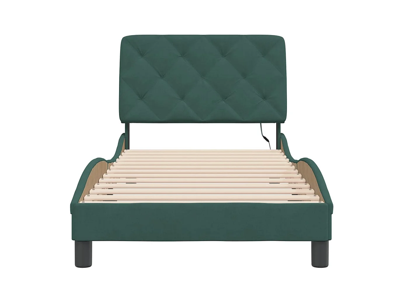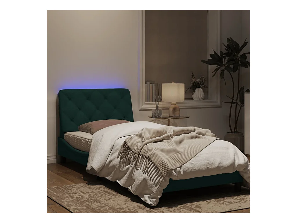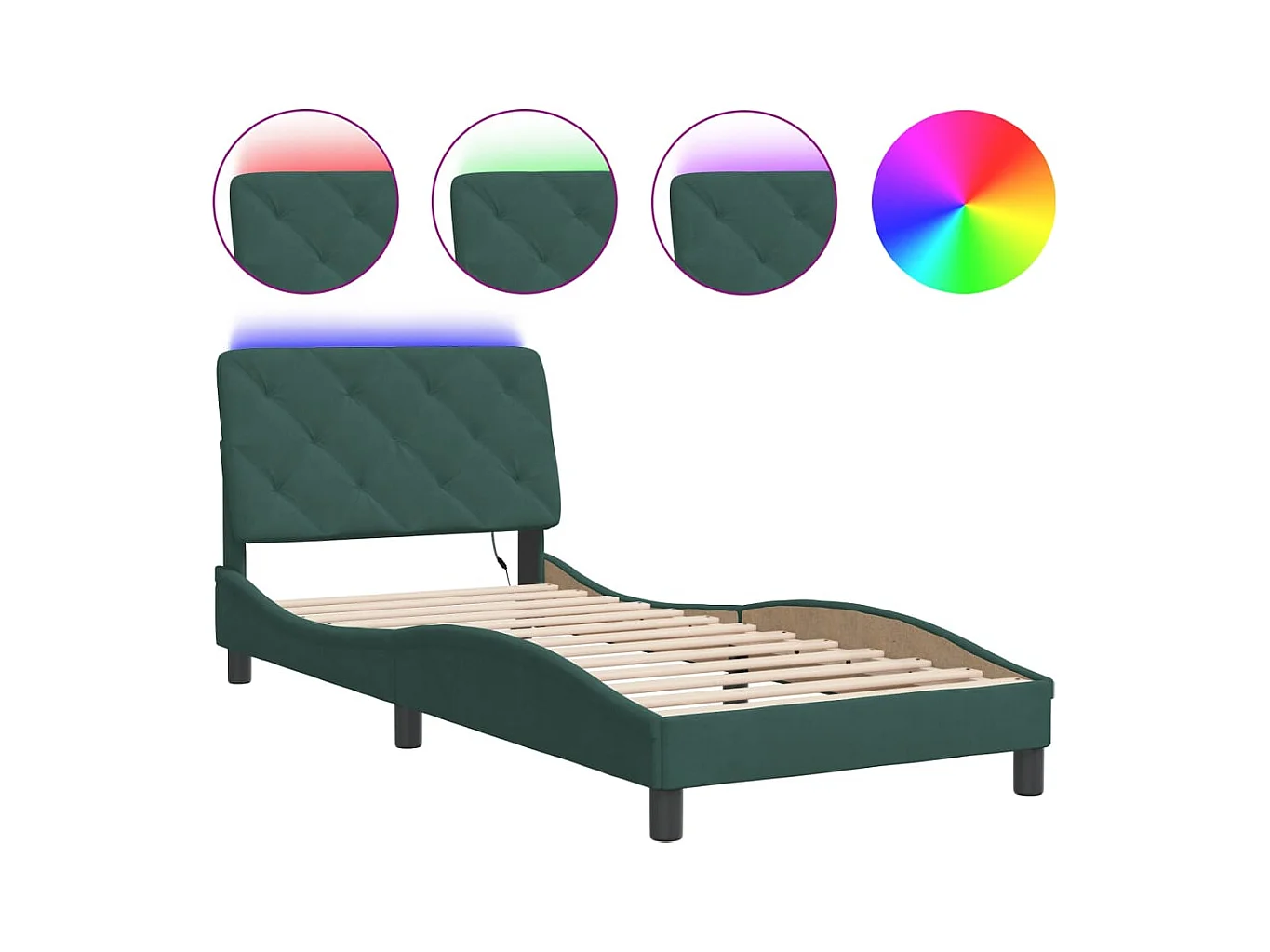 Cadre de lit avec lumières LED vert foncé 80x200 velours