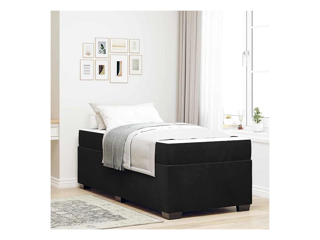 Cadre de lit avec matelas avec matelas Noir 90 x 200 cm Velours