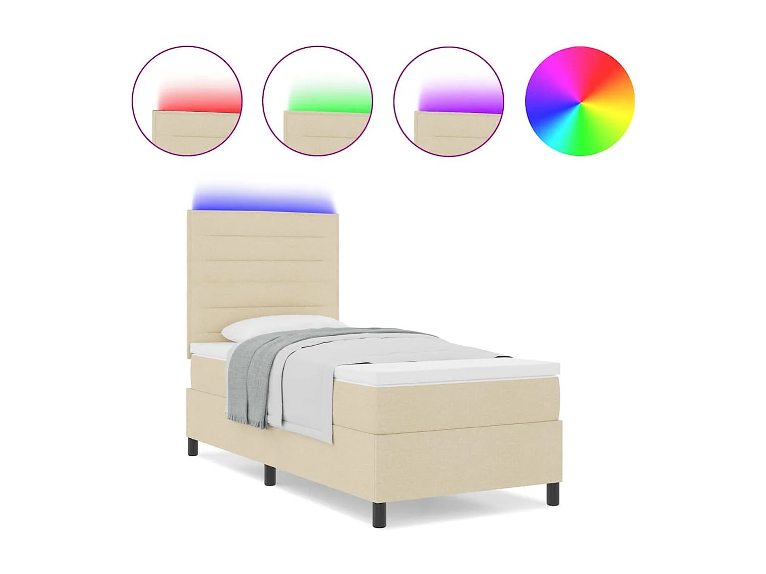Cadre de lit avec matelas Crème 100 x 200 cm tissu