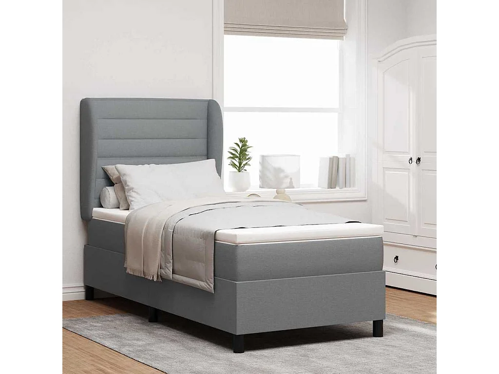 Cadre de lit avec matelas Gris clair 80 x 200 cm tissu